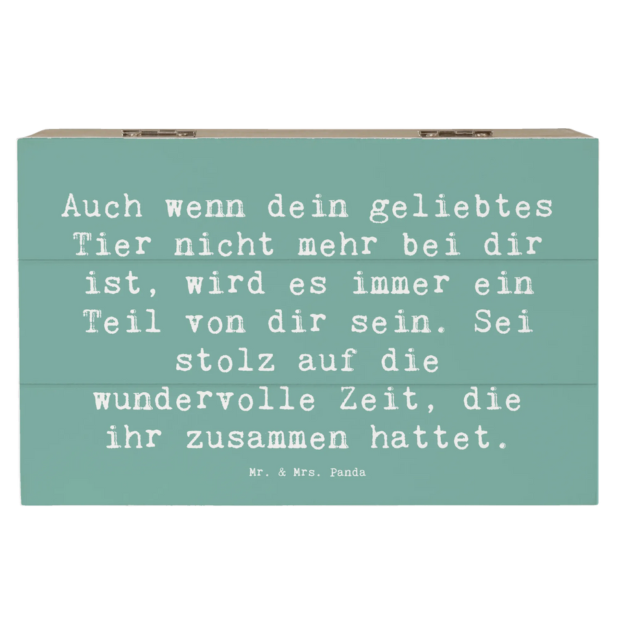 Die wunderschöne Holzkiste von Mr. & Mrs. Panda ist das perfekte Geschenk für alle, die den Verlust eines geliebten Haustieres verarbeiten möchten. Mit ihrem liebevollen Design und dem einfühlsamen Spruch 'Auch wenn unser Haustier nicht mehr bei uns ist, lebt es weiter in unseren Herzen und Erinnerungen.' bietet sie einen besonderen Ort zur Aufbewahrung von Erinnerungen und Schätzen, die uns mit unseren treuen Begleitern verbinden.