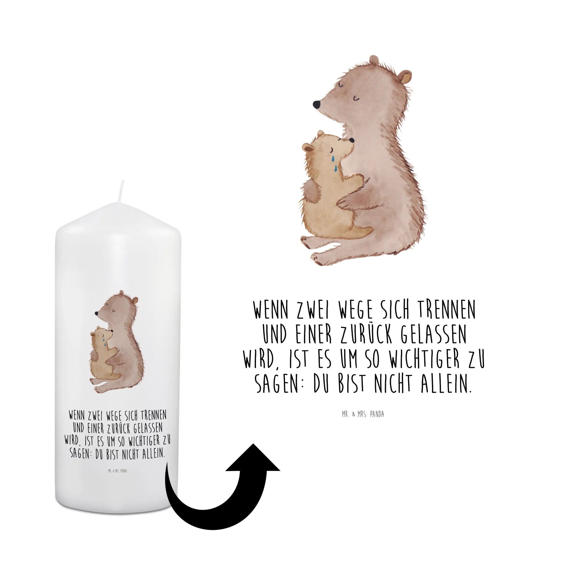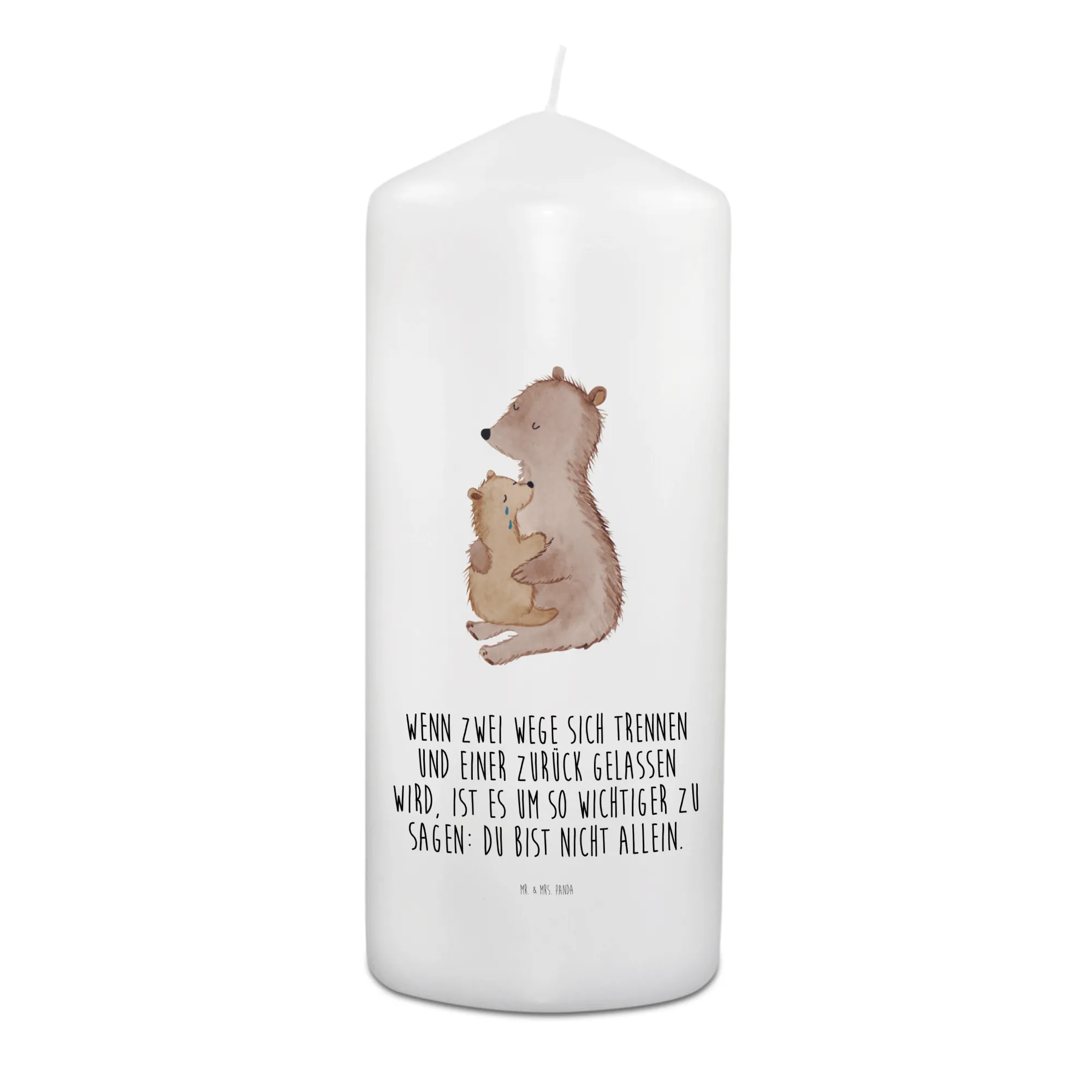Die Trauerkerze 'Bär mit Kind weinend' von Mr. & Mrs. Panda ist das perfekte Geschenk für all jene, die in schweren Zeiten Trost und Anteilnahme zeigen möchten. Mit einem liebevollen Motiv, das einen großen Bären zeigt, der einen kleinen Bären im Arm hält, vermittelt diese Kerze Wärme und Unterstützung in Momenten des Verlustes. Egal, ob du sie für eine Beerdigung, als Andenken an einen lieben Menschen oder einfach zur Gedenkfeier zündest, sie schafft eine einfühlsame Atmosphäre, die dabei hilft, Erinnerungen lebendig zu halten.