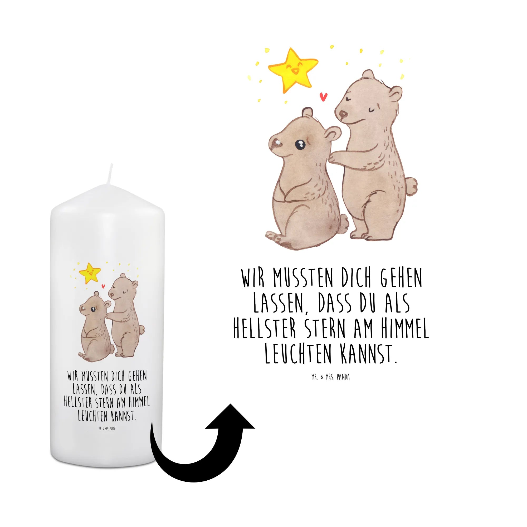Die Trauerkerze "Bäreneltern Sternenkind" von Mr. & Mrs. Panda ist ein liebevoll gestaltetes Gedenklicht, das in schwerer Zeit Trost und Licht spenden möchte. Wenn ein geliebtes Familienmitglied oder sogar ein ungeborenes Kind von uns geht, kann es eine Herausforderung sein, die richtigen Worte zu finden. Diese edle Trauerkerze ist dabei eine wunderbare Hilfe, um Erinnerungen zu bewahren und liebevolle Gedanken auszudrücken.