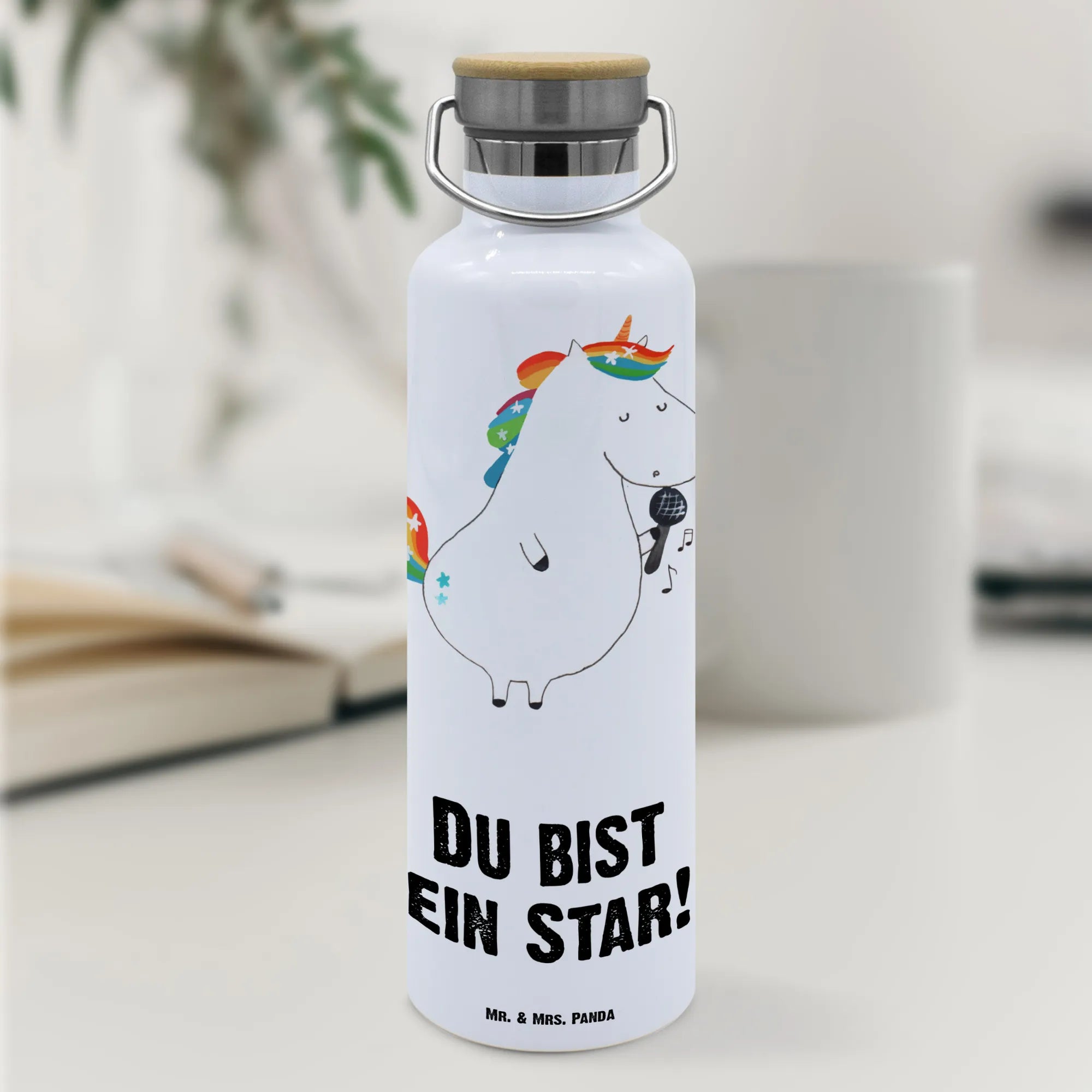 Die Trinkflasche von Mr. & Mrs. Panda ist das perfekte Accessoire für alle, die Wert auf Stil und Funktion legen! Ihre Abmessungen von 255 mm x 78 mm und das Volumen von 750 ml machen sie zum idealen Begleiter für alle Abenteuer. Hergestellt aus doppelwandigem Edelstahl hält sie deine heißen und kalten Getränke lange frisch. Der hübsche Bambusdeckel setzt einen tollen Akzent. Egal, ob du deinen Kaffee zur Arbeit mitnehmen möchtest oder Erfrischungsgetränke für einen Ausflug planst, diese Flasche ist die Antwort auf all deine Bedürfnisse. Ihre bezaubernden Sprüche und Designs bringen jeden dazu, ein Lächeln zu tragen. Bitte verwende bei der Pflege nur eine sanfte Handwäsche, um die Schönheit deiner Flasche zu bewahren.