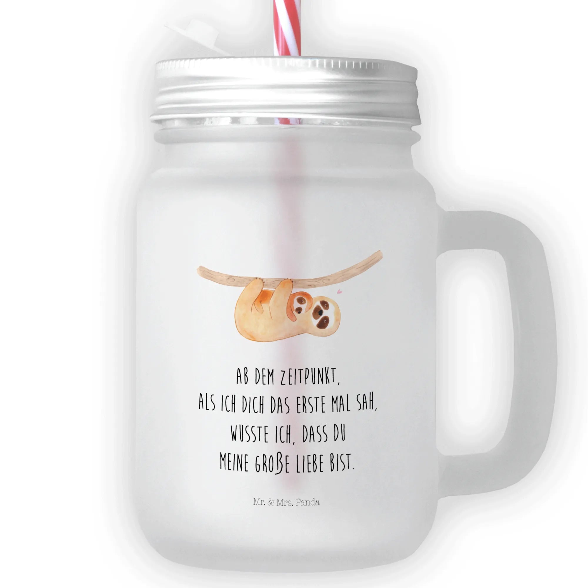 Das Trinkglas Mason Jar mit dem zauberhaften Motiv "Faultier mit Kind" aus der Faultier-Kollektion von Mr. & Mrs. Panda ist das perfekte Geschenk für alle, die Faultiere lieben und das besondere in ihrem Alltag suchen. Ob als liebevolles Präsent zur Geburt eines Kindes, zur Feier einer Mama oder einfach nur zur Verschönerung eines gemütlichen Sommerabends – dieses Trinkglas bringt Freude und Niedlichkeit in jedes Zuhause.