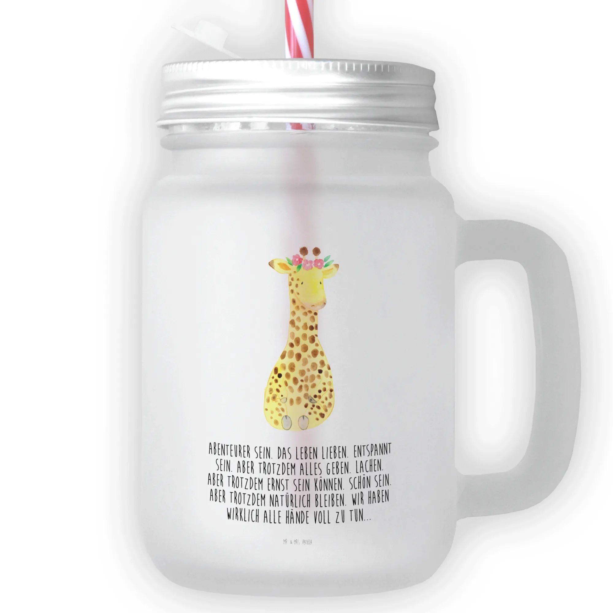 Mason Jar Trinkglas „Giraffe Blumenkranz“ – Dein neuer Lieblingsbegleiter aus der Afrika-Kollektion von Mr. & Mrs. Panda.