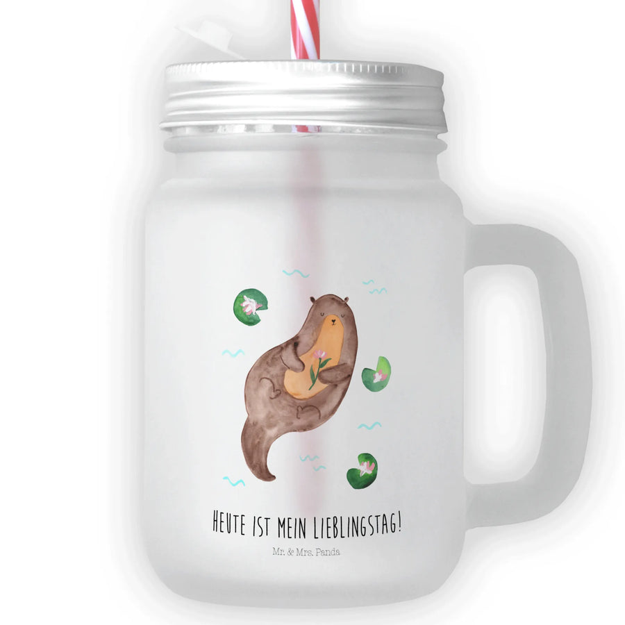 Das Trinkglas Mason Jar mit dem bezaubernden Motiv "Otter mit Seerose" aus der Otter-Kollektion von Mr. & Mrs. Panda ist das perfekte Geschenk für alle, die das Besondere lieben. Dieses edle und sommerliche Trinkglas vereint Funktionalität und Stil und bietet die ideale Möglichkeit, deine Lieblingsgetränke zu genießen. Jeder Schluck wird zu einem Highlight, besonders an heißen Sommertagen!