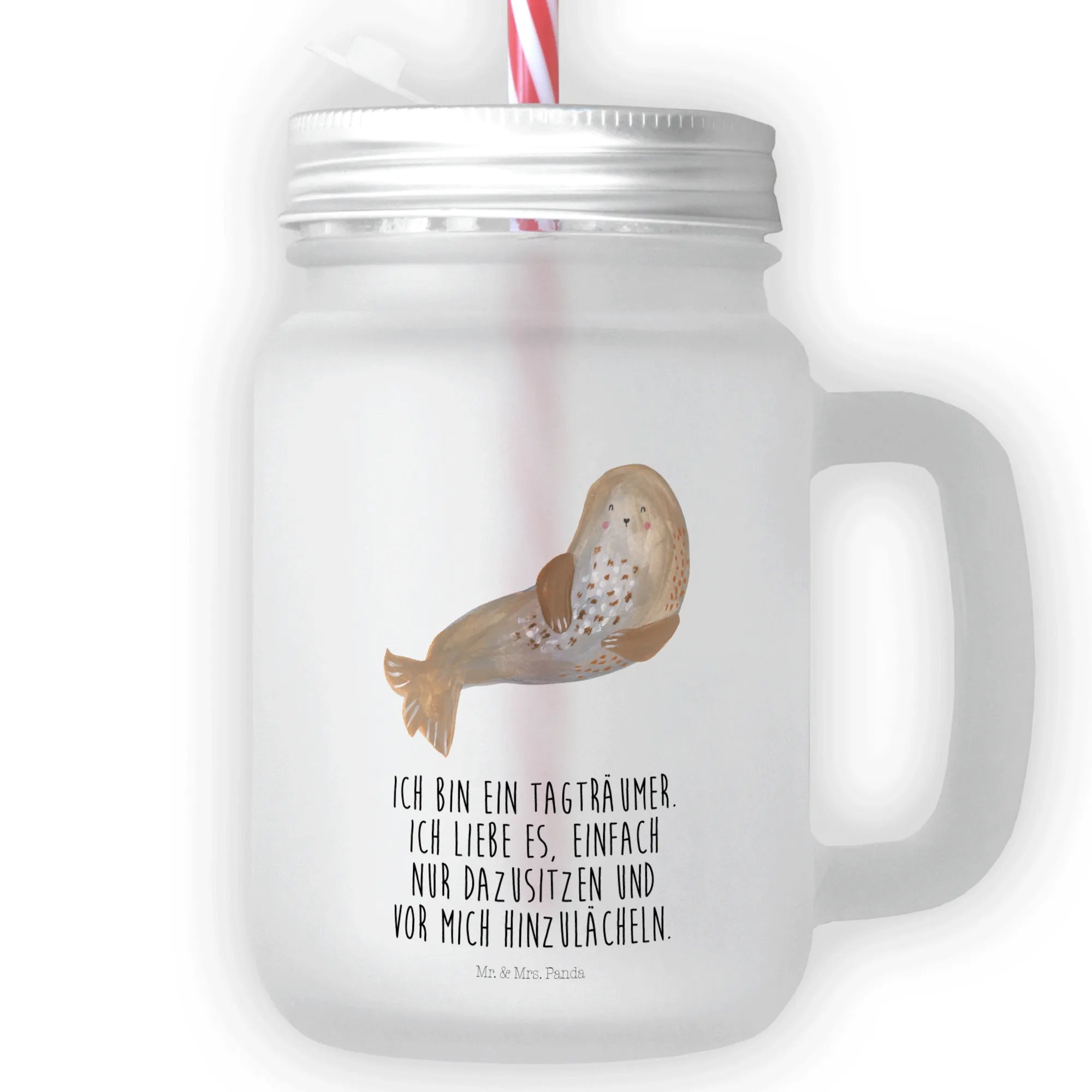 Trinkglas Mason Jar Robbe lachend - mit Spruch