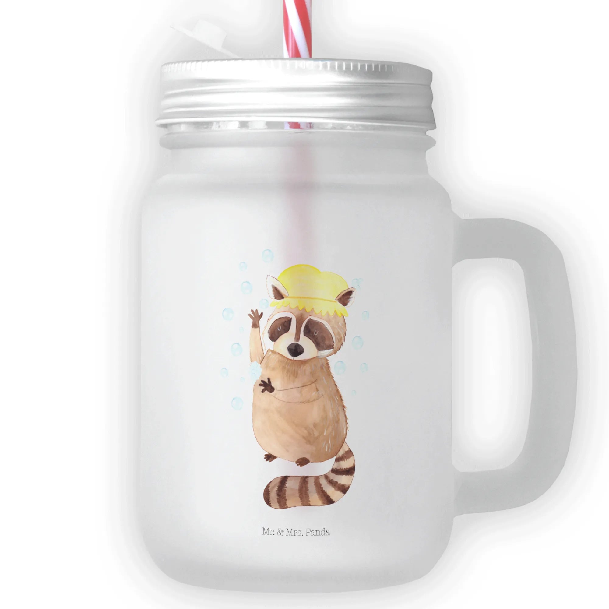 Das Trinkglas Mason Jar mit dem niedlichen Waschbär-Motiv aus der Small World Kollektion von Mr. & Mrs. Panda ist der perfekte Begleiter für deinen Sommer! Mit einer edlen, matten Oberfläche und einem robusten Metalldeckel schützt es deine Lieblingsgetränke vor Insekten und Schmutz, während der stilvolle Henkel und der wiederverwendbare Strohhalm aus Kunststoff den Genuss noch angenehmer machen. Perfekt für Cocktails, erfrischende Limonaden oder iced teas ist dieses Glas nicht nur ein praktischer Alltagsheld, sondern auch ein echter Hingucker auf jeder Sommerparty oder beim Picknick im Park.
