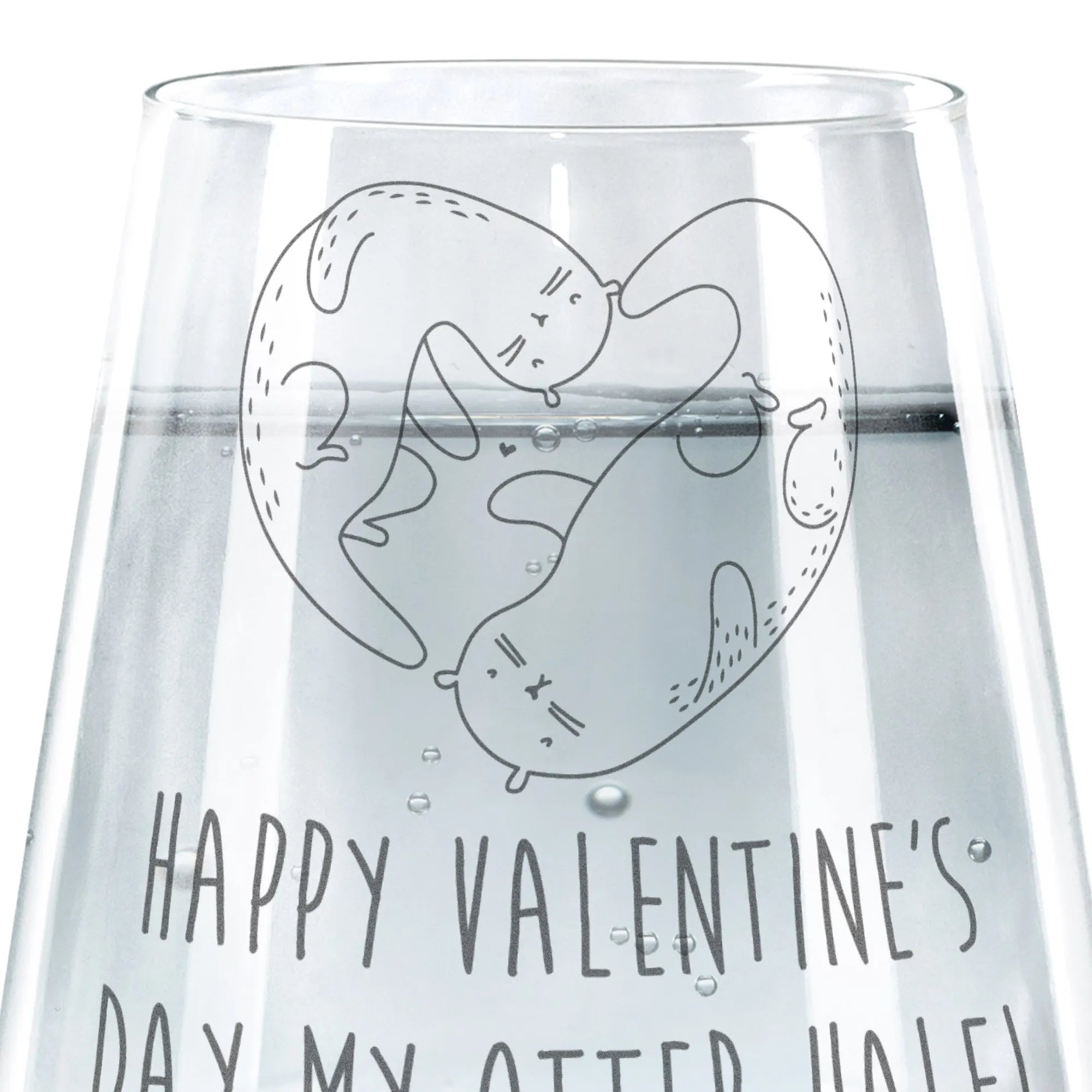 Dieses wunderschöne Trinkglas mit dem süßen Motiv "Otter Valentine" aus der Liebe Kollektion von Mr. & Mrs. Panda ist das perfekte Geschenk für alle Verliebten! Egal ob für den Valentinstag, einen Jahrestag oder einfach nur so - mit der liebevollen Gravur "Happy valentine's day my otter half!" wird dieses Glas zum ganz besonderen Liebesbeweis. Die zwei niedlichen Otter, die sich an den Händen halten und ein Herz formen, bringen jedes Herz zum Schmelzen.