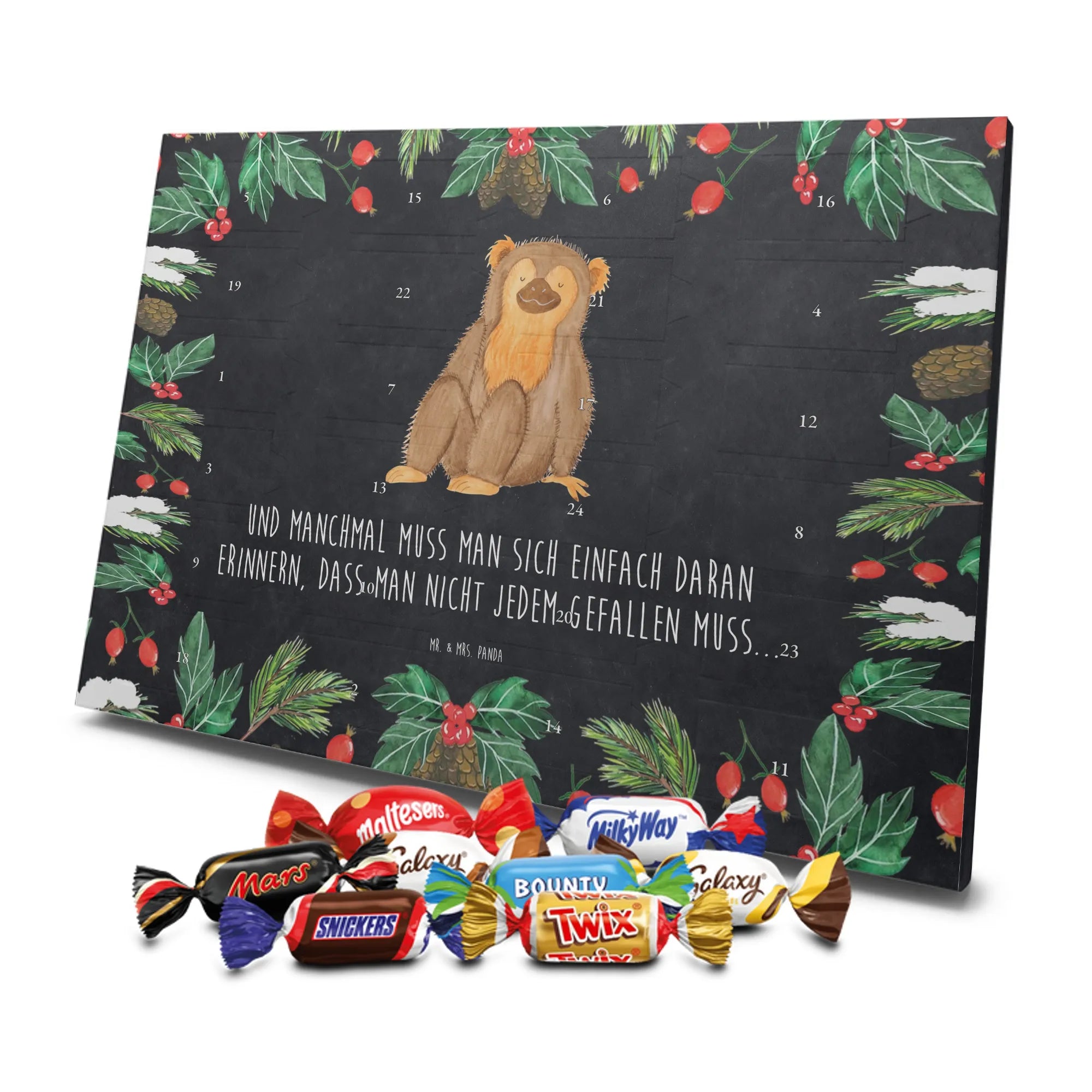 süßigkeiten adventskalender Affe - Classic - mit Spruch - Kreidetafel
