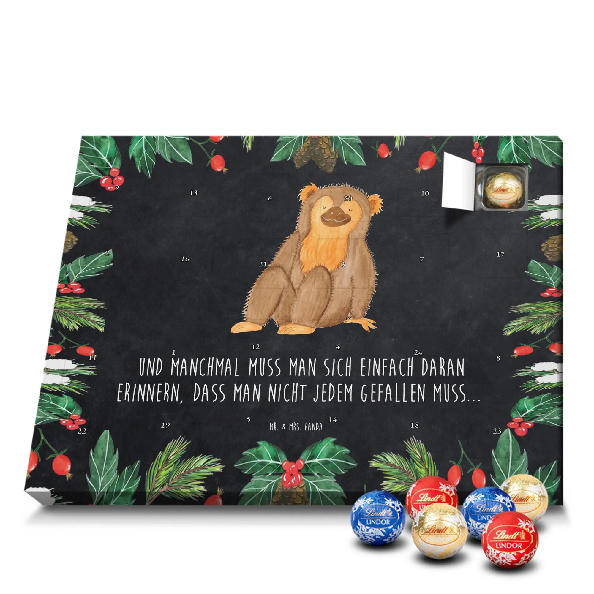 🐼 Schoko Adventskalender mit Lindt Lindor, 24 Kugeln, seidenmatter Druck, nicht personalisierbar.