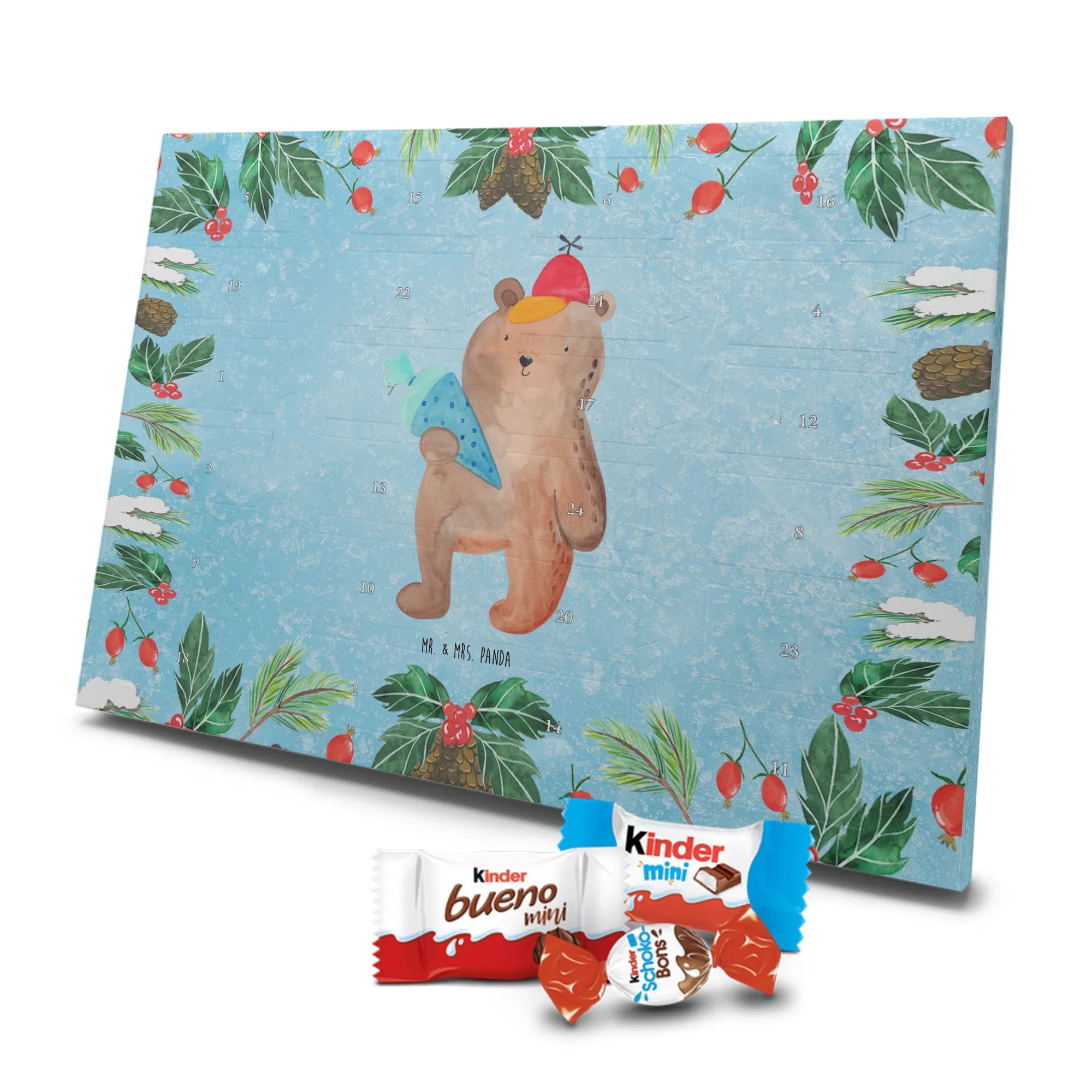 Unser Schokoladen Adventskalender von Mr. & Mrs. Panda bringt Charme und süße Überraschungen in deine Adventszeit. Liebevoll bedruckt mit wunderschönen Motiven & Sprüchen von Mr. & Mrs. Panda, ist dieser Kalender nicht personalisierbar, dafür aber mit hochwertiger Verarbeitung und stimmigem Design. Die brillante Druckqualität mit seidenmatter Oberflächenveredelung verleiht jedem Motiv eine edle Optik, und die bedruckten Seitenflächen runden das Gesamtbild ab. Maße: 355 mm x 245 mm x 11 mm. Eine praktische Besonderheit: kann aufgehängt oder aufgestellt werden – so passt er perfekt in jede Deko. Gefüllt mit Markenname Schokolade: Adventskalender gefüllt mit kinder® Schokolade. Inhalt: kinder® Schoko-Bons, kinder® Bueno mini und kinder® Schokolade mini. Mit 24 kleinen Leckereien hinter den Türchen ist dieser Kalender ideal für Kinder und alle Naschkatzen. Er eignet sich wunderbar als Adventsgeschenk oder als liebevolle Aufmerksamkeit für Kollegen und Freunde. Gönn dir oder anderen eine süße Adventszeit mit diesem bezaubernden Schokoladen Adventskalender!