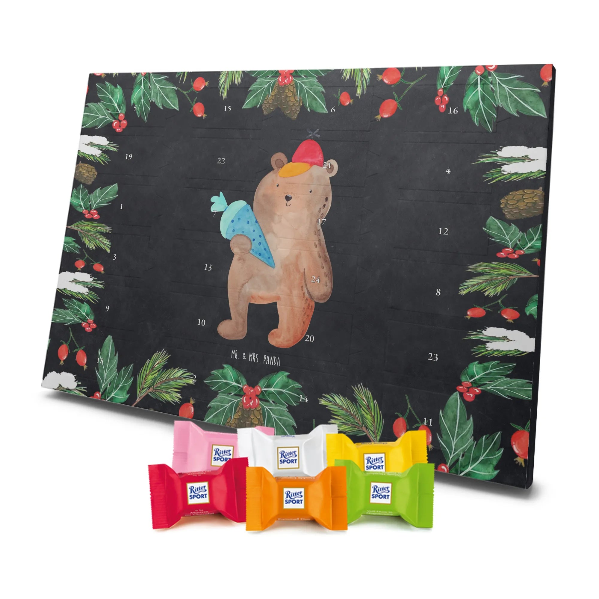 🐼 Schoko-Adventskalender: Liebevolles Design, seidenmatt, brillanter Druck – ein Hingucker.