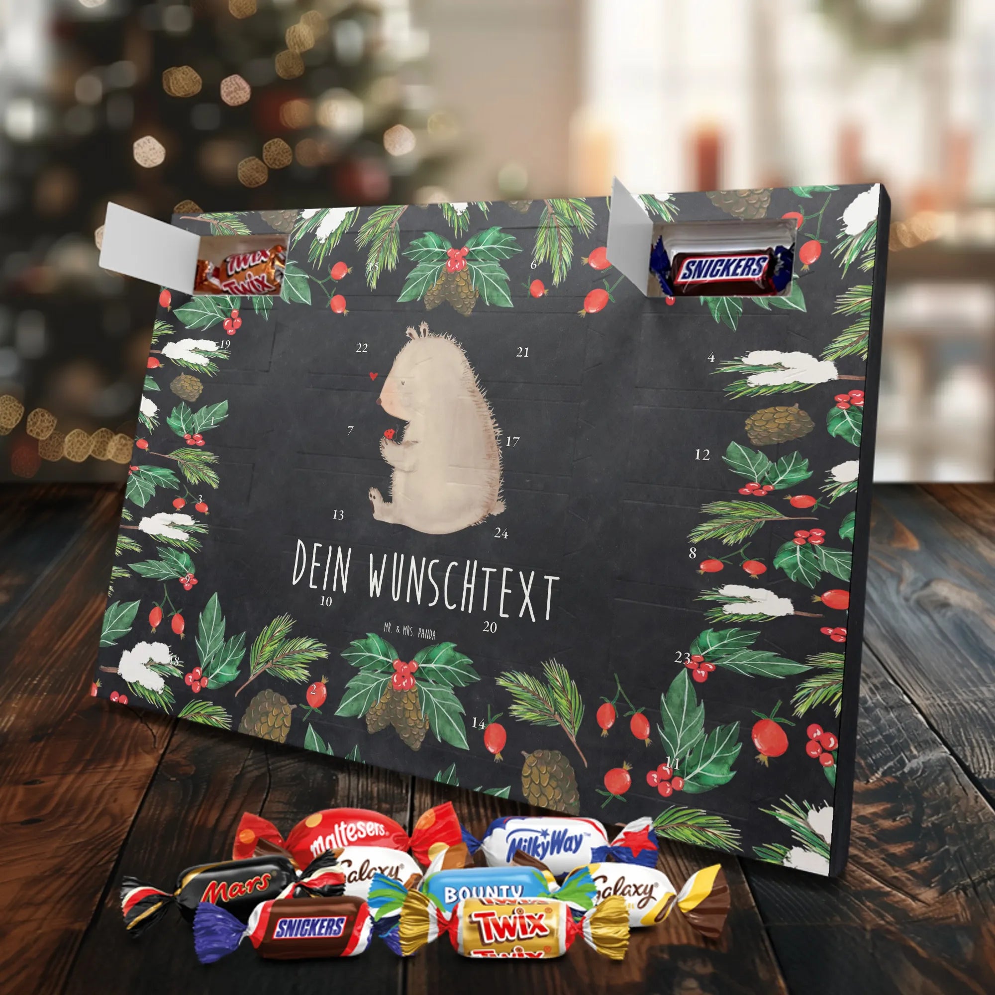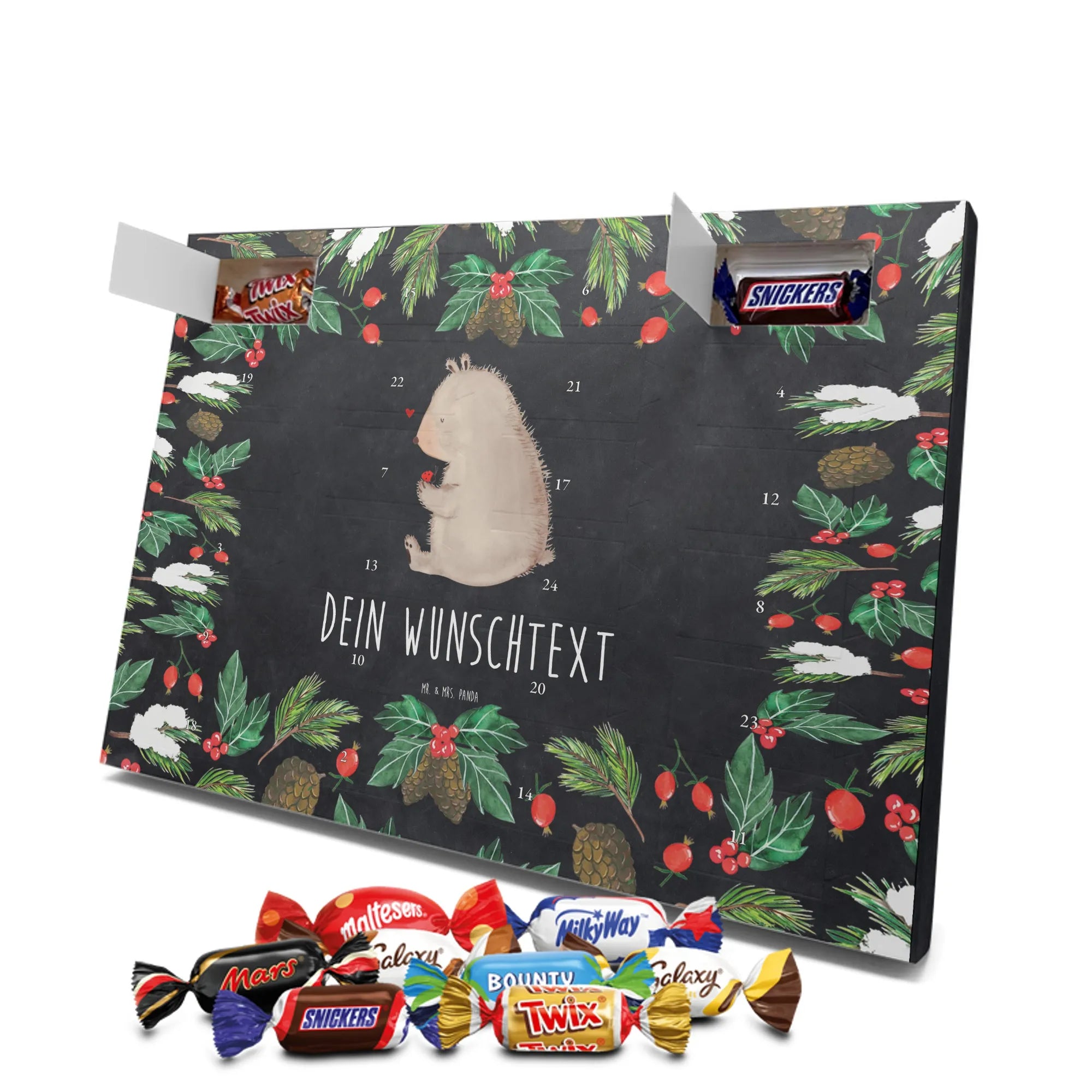 Personalisierter Schoko-Adventskalender von Mr. & Mrs. Panda – liebevoll gestaltet und ideal als individuelles Geschenk in der Adventszeit. Wir bedrucken den Kalender mit zauberhaften Motiven & herzlichen Sprüchen und personalisieren ihn mit deinem Wunschnamen oder Wunschtext. Die hochwertige Druckqualität kombiniert mit einer seidenmatten Oberflächenveredelung sorgt für ein edles Erscheinungsbild, und die bedruckten Seitenflächen geben dem Motiv zusätzlichen Charme. Der Kalender kann aufgehängt oder aufgestellt werden, sodass du ihn flexibel platzieren kannst. Gefüllt ist der Kalender mit Celebrations, die 24 hochwertige Überraschungen in 8 verschiedenen Sorten beinhalten: Maltesers, Mars, Snickers, Twix, Milky Way, Bounty, Galaxy und Galaxy Caramel. Maße: 325 mm x 225 mm x 27 mm – handlich und doch großzügig für die kleinen Leckereien hinter den Türchen. Ob für Kinder, Partner oder beste Freunde: dieser personalisierte Schoko-Adventskalender macht das Warten auf Weihnachten bunter und leckerer. Verschenke eine persönliche Erinnerung und jeden Tag ein kleines Schokoladen-Glück!
