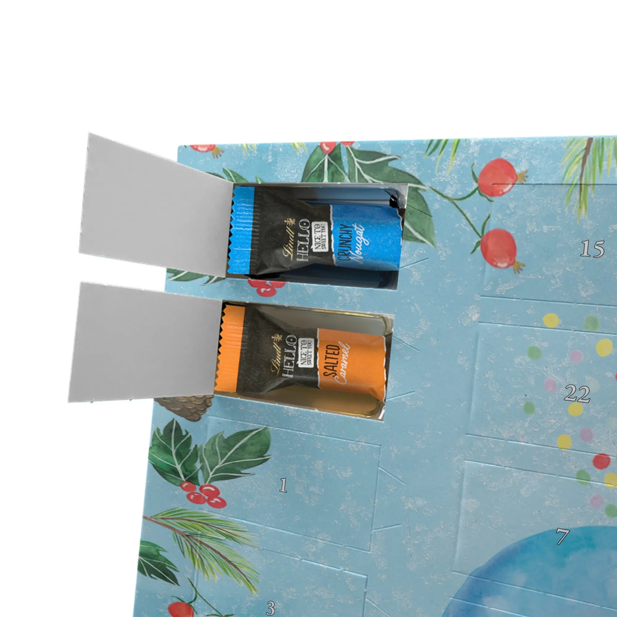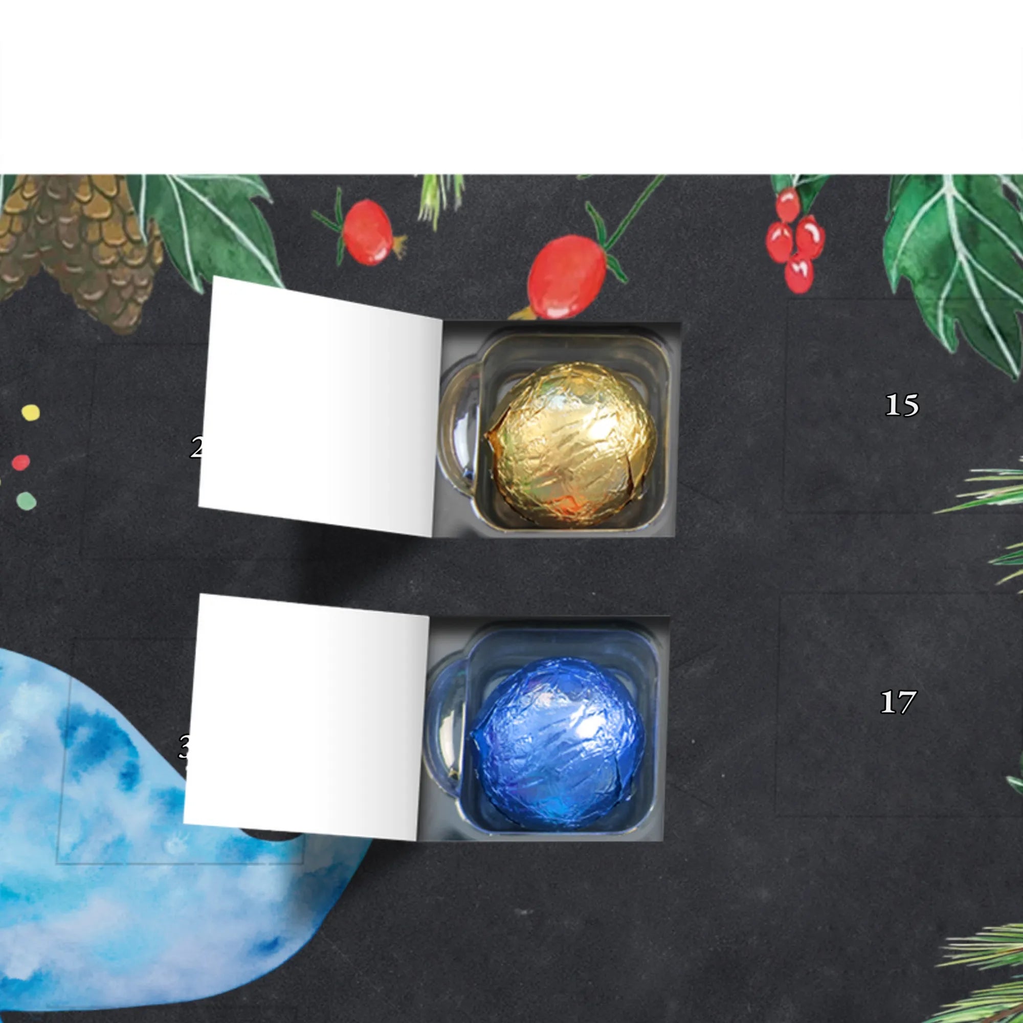Wunderschöner Adventskalender mit Schokolade von Mr. & Mrs. Panda – für alle, die Advent und Design lieben. Dieser Adventskalender mit Schokolade ist liebevoll bedruckt mit wunderschönen Motiven & Sprüchen von Mr. & Mrs. Panda und ist nicht personalisierbar, aber mit viel Liebe zum Detail gefertigt. Brillante Druckqualität mit seidenmatter Oberflächenveredelung sorgt für einen edlen Look, und die bedruckten Seitenflächen geben dem Kalender eine besondere Optik. Maße: 233 mm x 178 mm x 24 mm. Dank seiner stabilen Verarbeitung kannst du ihn aufstellen oder ganz einfach aufhängen – Besonderheit: kann aufgehängt oder aufgestellt werden. Gefüllt mit MARKENNAMEN Schokolade und leckeren Schokoladenkugeln, bringt er jeden Tag ein kleines Glückserlebnis. Wichtige Hinweise: (Kann Spuren von Haselnüssen, Mandeln, Gluten und Soja enthalten!), bitte kühl und trocken lagern. Ob als Geschenk, Mitbringsel oder Adventsdeko – dieser Kalender zaubert ein Lächeln und sorgt für gemütliche Vorfreude. Viel Freude beim Entdecken der süßen Überraschungen wünscht dir Mr. & Mrs. Panda!