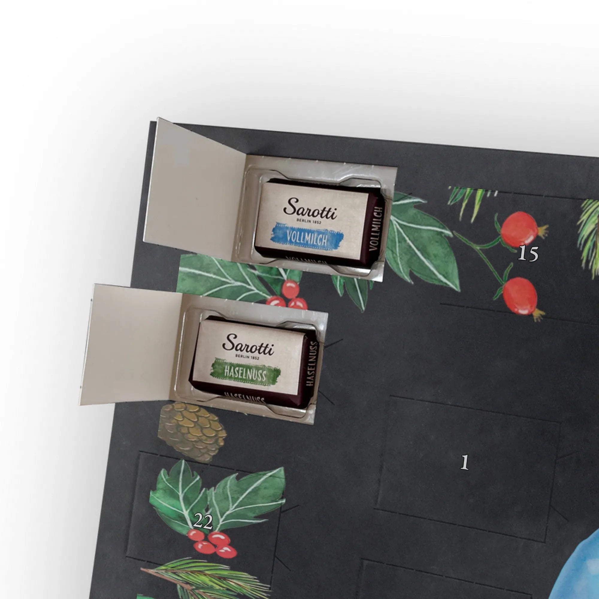 Adventskalender Schokolade von Mr. & Mrs. Panda – eine liebevolle Kombination aus hübschem Design und süßem Inhalt. Der Kalender ist bedruckt mit wunderschönen Motiven & Sprüchen von Mr. & Mrs. Panda und besticht durch brillante Druckqualität mit seidenmatter Oberflächenveredelung. Die Seitenflächen sind ebenfalls bedruckt, wodurch der Kalender rundum ein Hingucker ist. Er ist nicht personalisierbar. Maße: 325 mm x 225 mm x 27 mm. Besonders praktisch: Du kannst ihn sowohl aufgehängt als auch aufgestellt nutzen, je nachdem, wo er bei dir am schönsten wirkt. Gefüllt ist der Kalender mit Ritter Sport Schokowürfeln in verführerischen Sorten – Mousse au Chocolat, Schoko Crisp, Voll-Nuss in Nougatcreme, Karamell Duo, Joghurt und Erdbeer-Joghurt. Wichtiger Hinweis: Es handelt sich um einen Kalender gefüllt mit Ritter Sport Schokolade, nicht um einen Kalender der Marke Ritter Sport. Schenke deinen Liebsten oder dir selbst tägliche Schokoglücksmomente mit diesem charmanten Adventskalender.