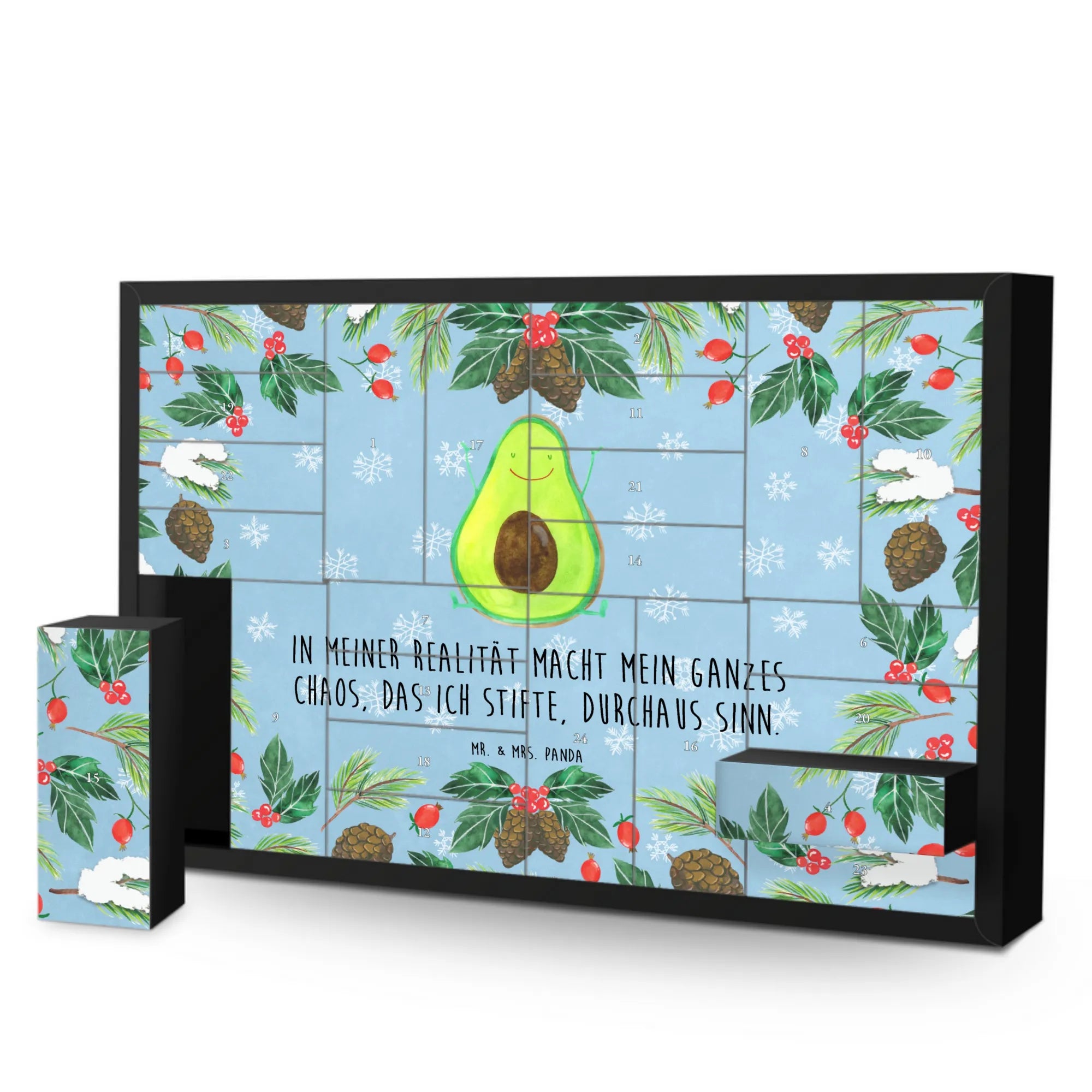 Die Kombination aus fröhlichen Farben und dem positiven Spruch reicht aus, um die Herzen aller Beschenkten höher schlagen zu lassen. Die Avocado Kollektion von Mr. & Mrs. Panda steht für Lebensfreude und die kleinen Wunder des Alltags, daher ist dieser Adventskalender nicht nur ein Adventskalender, sondern ein kleines Stück Glück.