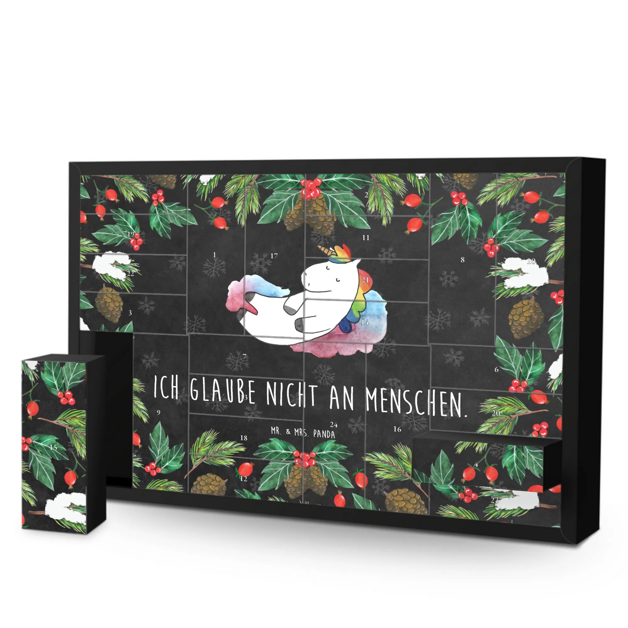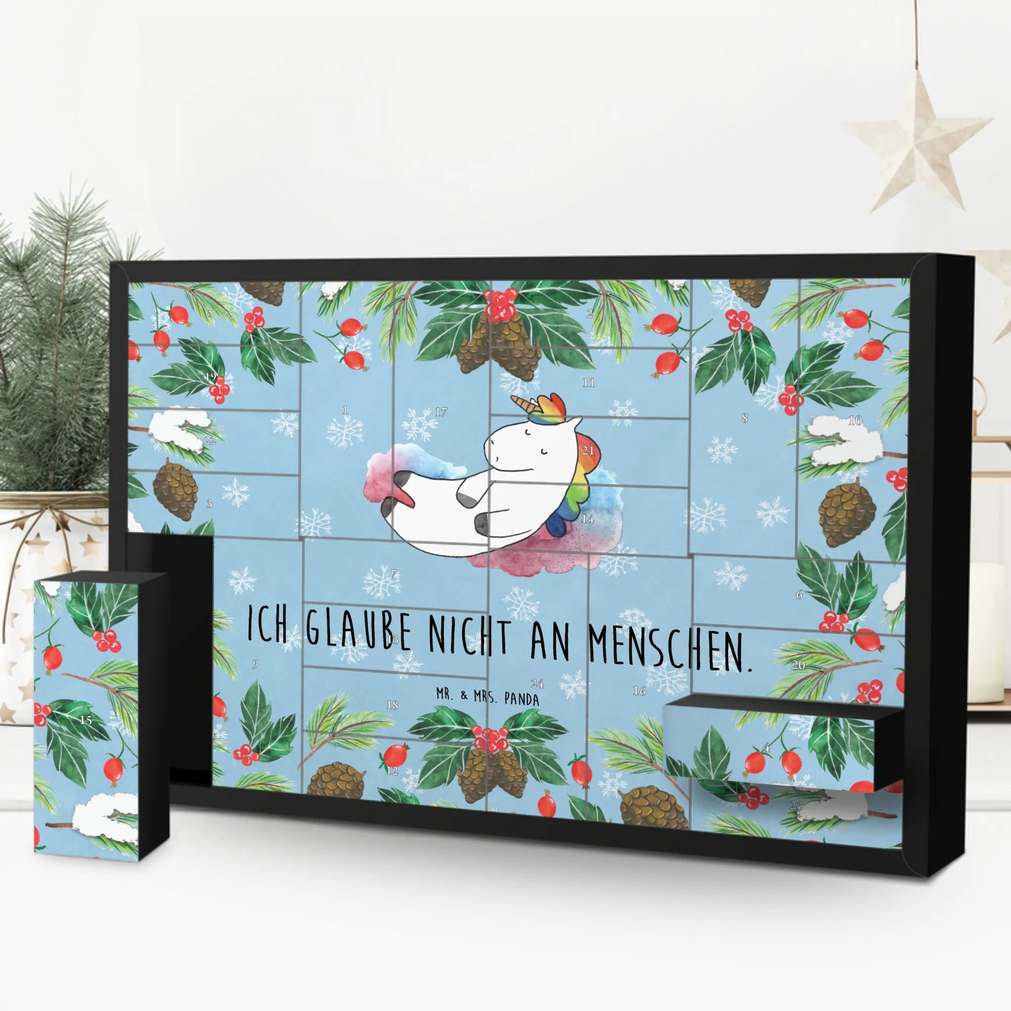 Der wunderschöne Befüllbare Adventskalender Einhorn Wolke 7 von Mr. & Mrs. Panda ist das perfekte Geschenk für jeden Einhornliebhaber! Mit seiner liebevollen Zeichnung eines süßen Einhorns, das entspannt auf einer Wolke sitzt und sich sicher ist: "Ich glaube nicht an Menschen", bringt dieser Adventskalender ein Lächeln in jedes Zuhause. Die Kombination aus witzigem Slogan und einer zauberhaften Darstellung macht ihn zu einem Highlight in der Vorweihnachtszeit.