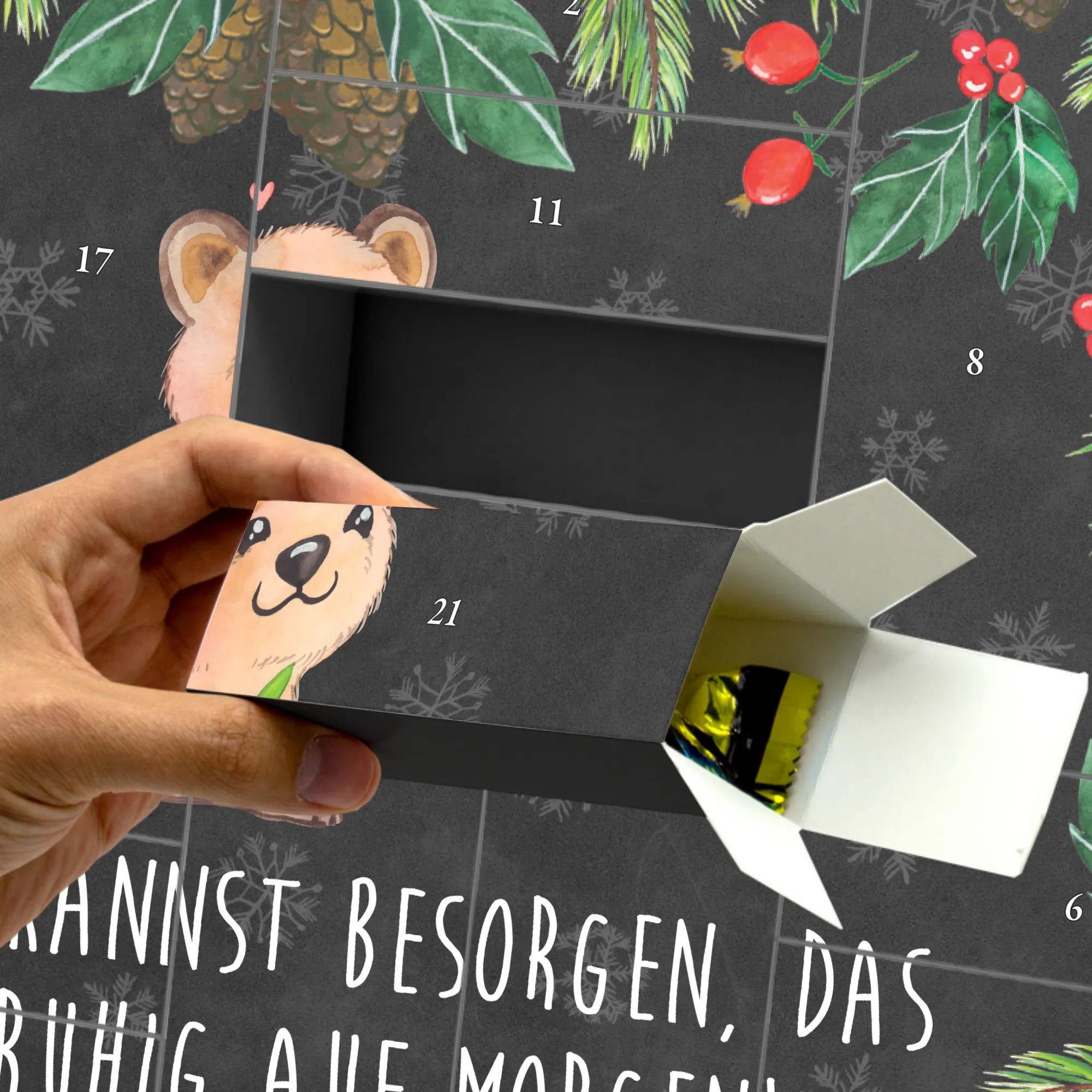 Der Befüllbare Adventskalender Quokka Happy von Mr. & Mrs. Panda ist das perfekte Geschenk für alle, die die Vorweihnachtszeit mit einem Lächeln verbringen möchten. Mit seiner niedlichen Zeichnung eines Quokkas, das freudig ein Blatt hält, zaubert dieser Kalender jedem Betrachter ein Lächeln ins Gesicht.
