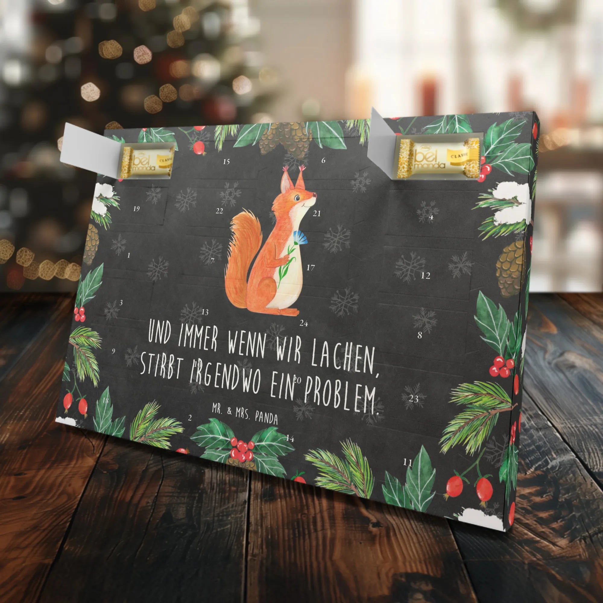 Das niedliche Eichhörnchen, das voller Freude eine Blume in den Pfoten hält, zaubert jedem Betrachter ein Lächeln ins Gesicht. Die warmen Farben und das verspielte Design machen diesen Adventskalender zu einem echten Hingucker in jeder Weihnachtsdekoration. Er ist nicht nur ein schöner Anblick, sondern bietet auch noch einen besonderen Slogan: „Und immer wenn wir lachen, stirbt irgendwo ein Problem.“ Diesem positiven Spruch kann man einfach zustimmen und er eignet sich hervorragend zur Motivation in der oft stressigen Vorweihnachtszeit.
