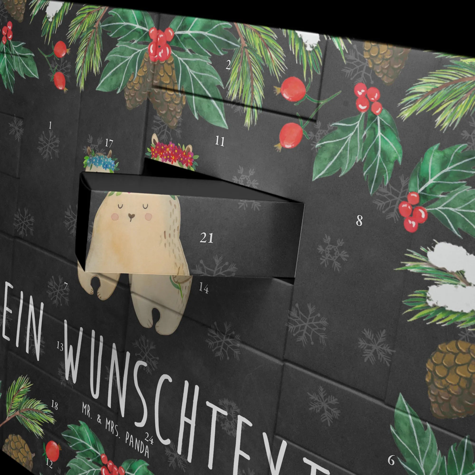Personalisierter Adventskalender zum Befüllen – die süße Idee von Mr. & Mrs. Panda für deine individuelle Adventszeit! Der Kalender ist liebevoll gestaltet, mit vielen warmen Sprüchen und der charmanten Zeichnung von Mrs. Panda auf der Vorderseite. Du kannst deinen Namen oder einen Wunschtext hinzufügen, damit der Kalender ganz persönlich wird. Er besteht aus stabilem Adventskalender Karton, hat eine seidenmatte Oberfläche und besticht durch brillante Druckqualität. Mit 24 Schachteln zum Selbstbefüllen kannst du jeden Tag im Dezember mit einer kleinen Überraschung füllen. Zusätzlich ist eine praktische Aufstellvorrichtung integriert, damit der Kalender überall schön zur Geltung kommt. Besonderer Hinweis: wird ohne Füllung geliefert. Maße: Breite: 619 mm, Höhe: 405 mm, Tiefe: 50 mm. Ideal als Geschenk oder als liebevolle Dekoration für dein Zuhause – voller Herzlichkeit und Panda-Charme.