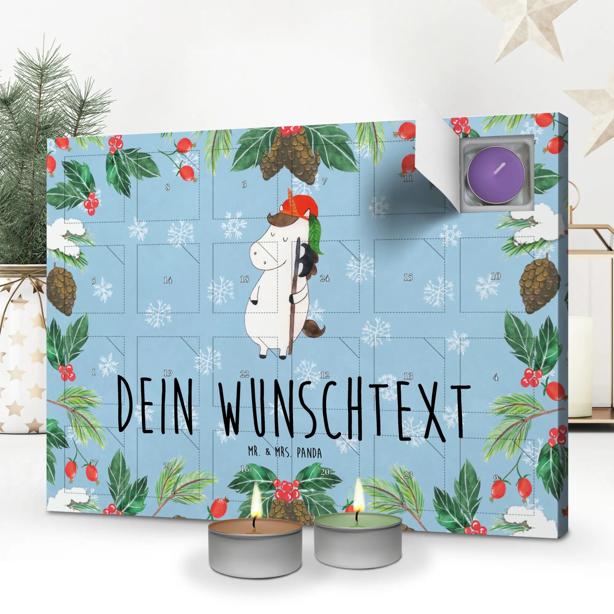 Erlebe Duft und Design: Bestell jetzt den personalisierten Duftkerzen Adventskalender und genieße 24 Tage voller Duftüberraschungen von Mr. & Mrs. Panda.