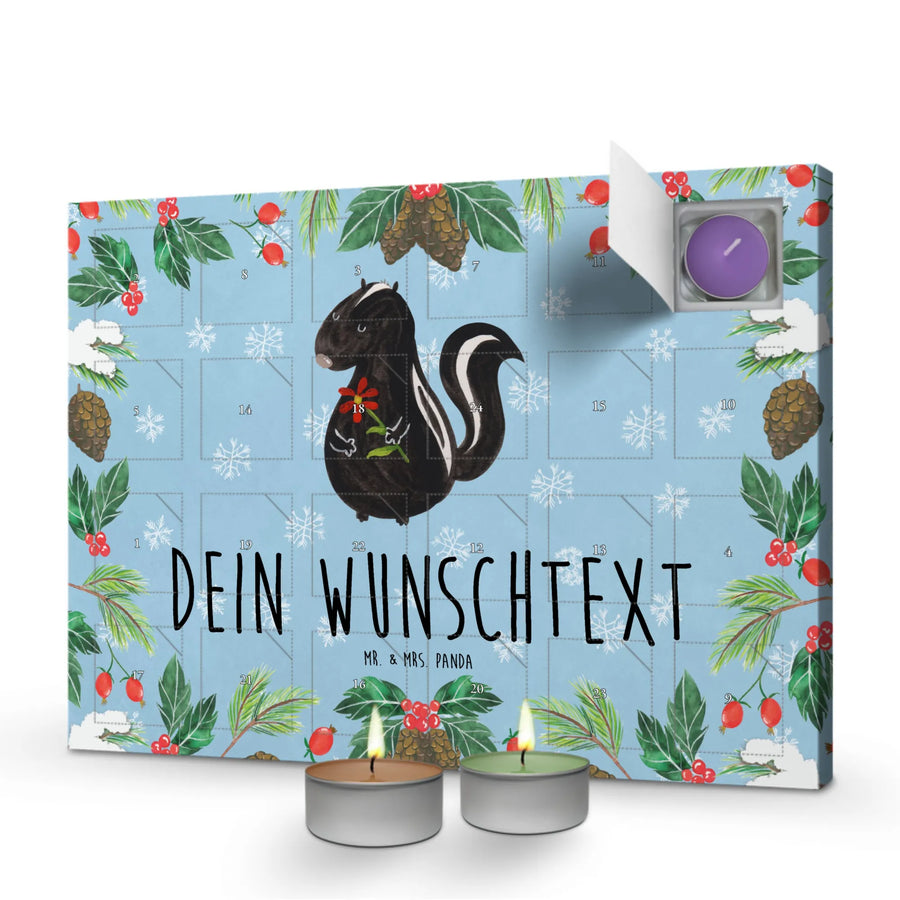 Personalisierter Duftkerzen Adventskalender Stinktier Blume - Eisblau