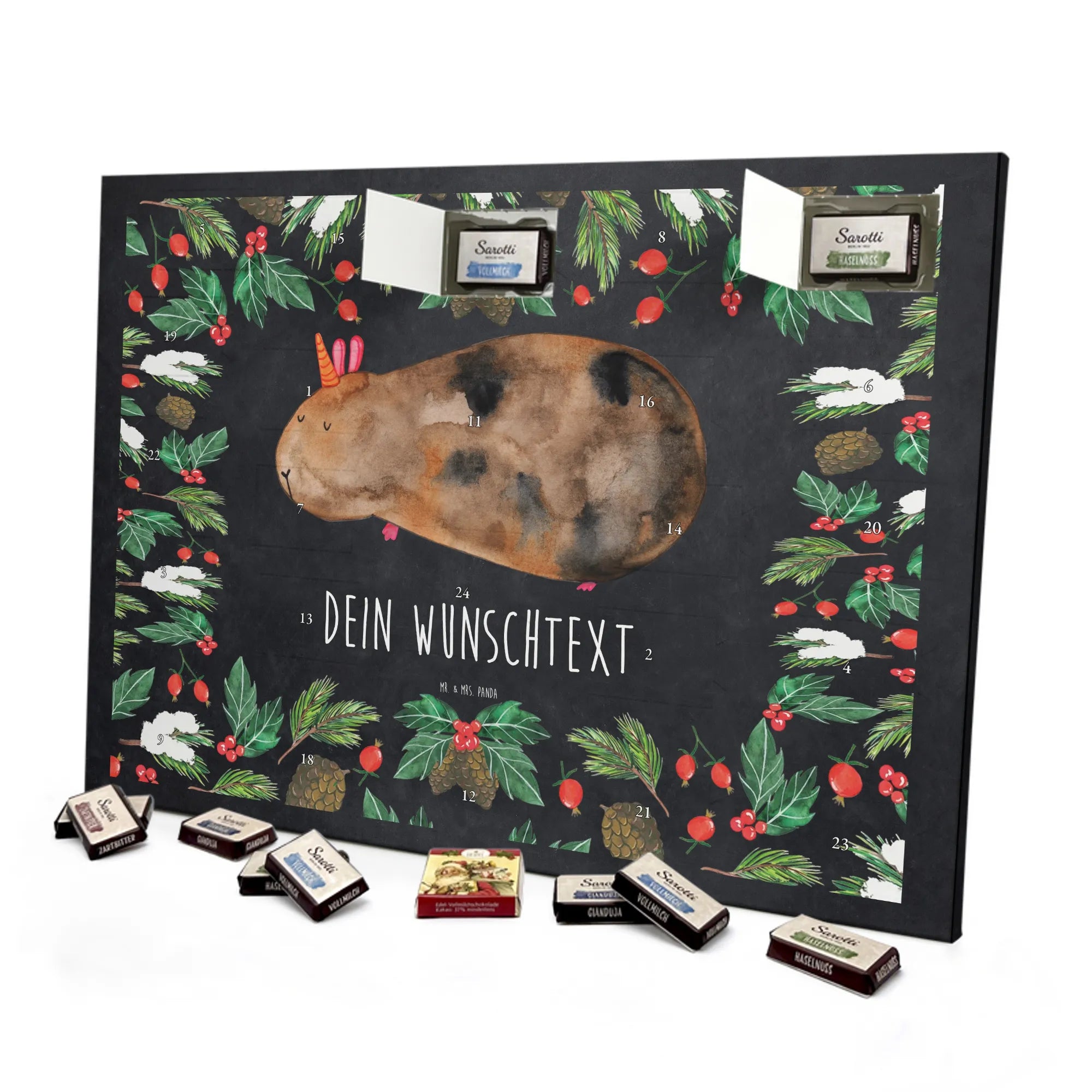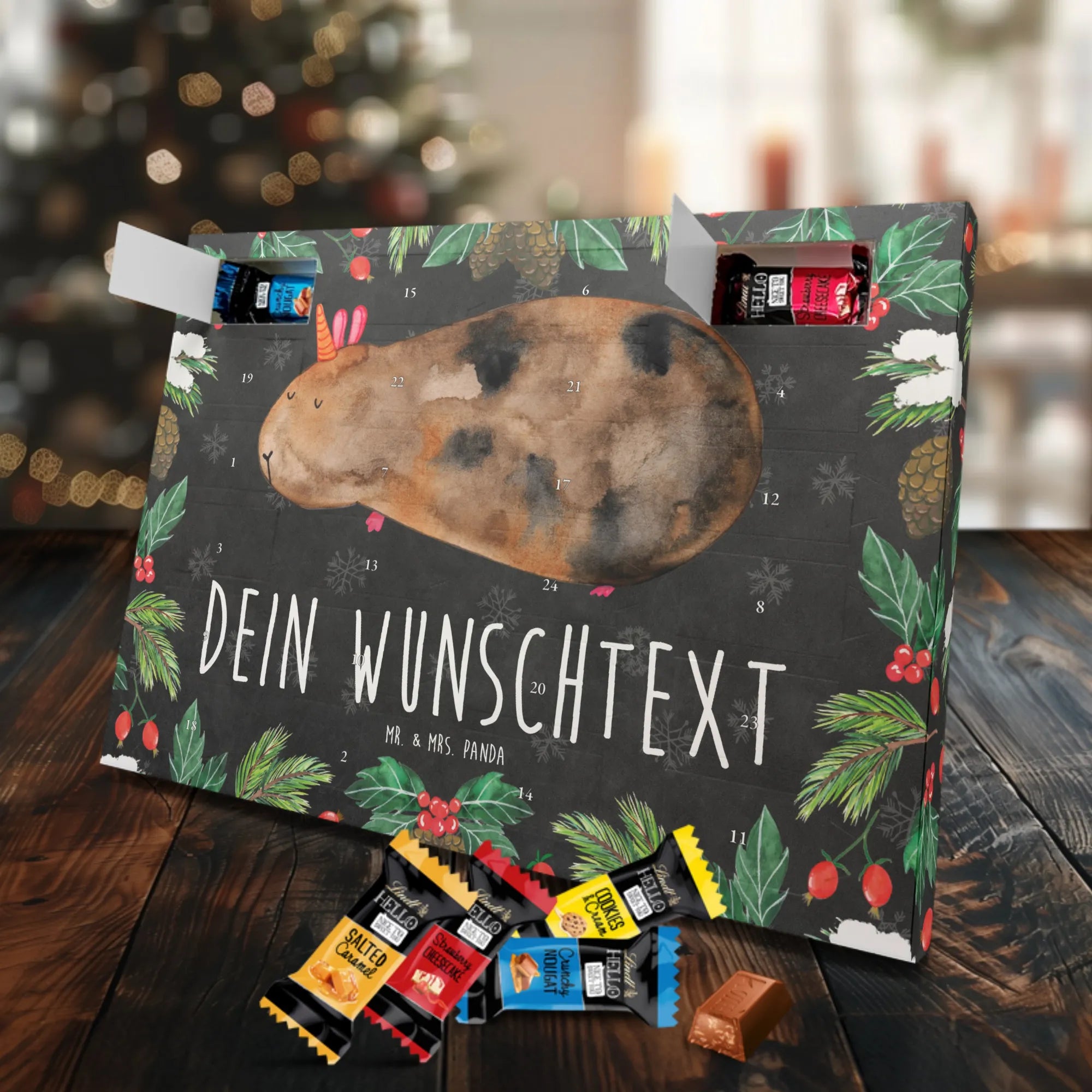Personalisierter Schoko Adventskalender Meerhörnchen aus der Einhorn - Kollektion von Mr. & Mrs. Panda. Dieses zauberhafte Motiv zeigt ein handgezeichnetes Meerschweinchen mit Horn und den liebevollen Spruch: „Sie sagten, ich könnte alles sein. Also wurde ich ein Meerhörnchen.“ Der Kalender ist personalisierbar mit deinem Wunschnamen und wird so zu einem ganz besonderen Geschenk für Kinder, Einhorn-Fans und alle, die Fantasie lieben. 🎁