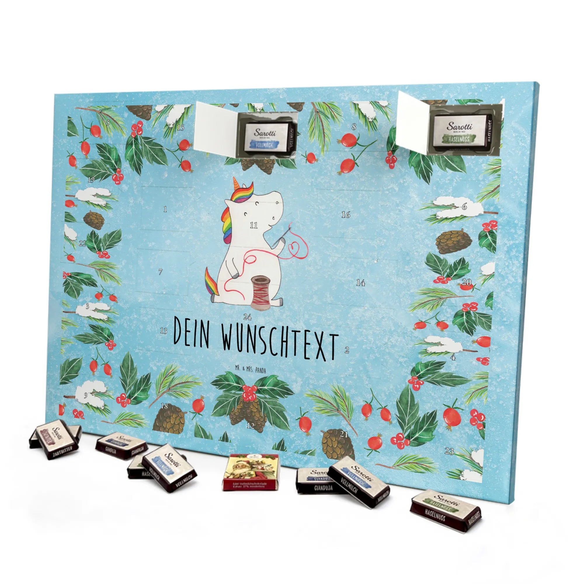 Personalisierter Schoko Adventskalender „Einhorn Näherin“ von Mr. & Mrs. Panda