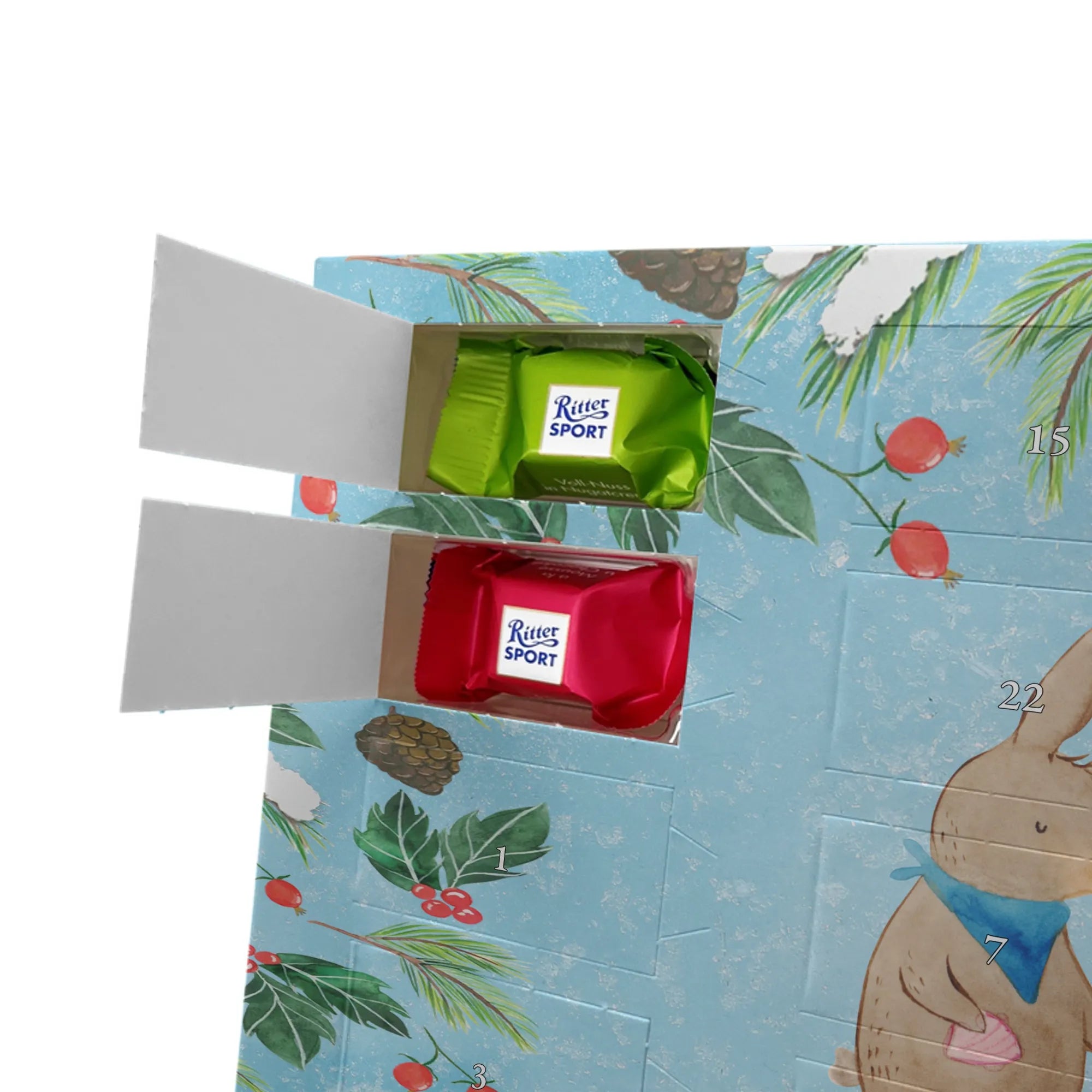 🐼 Personalisierter Schoko Adventskalender, seidenmatt und mit Ritter Sport Schokowürfeln.