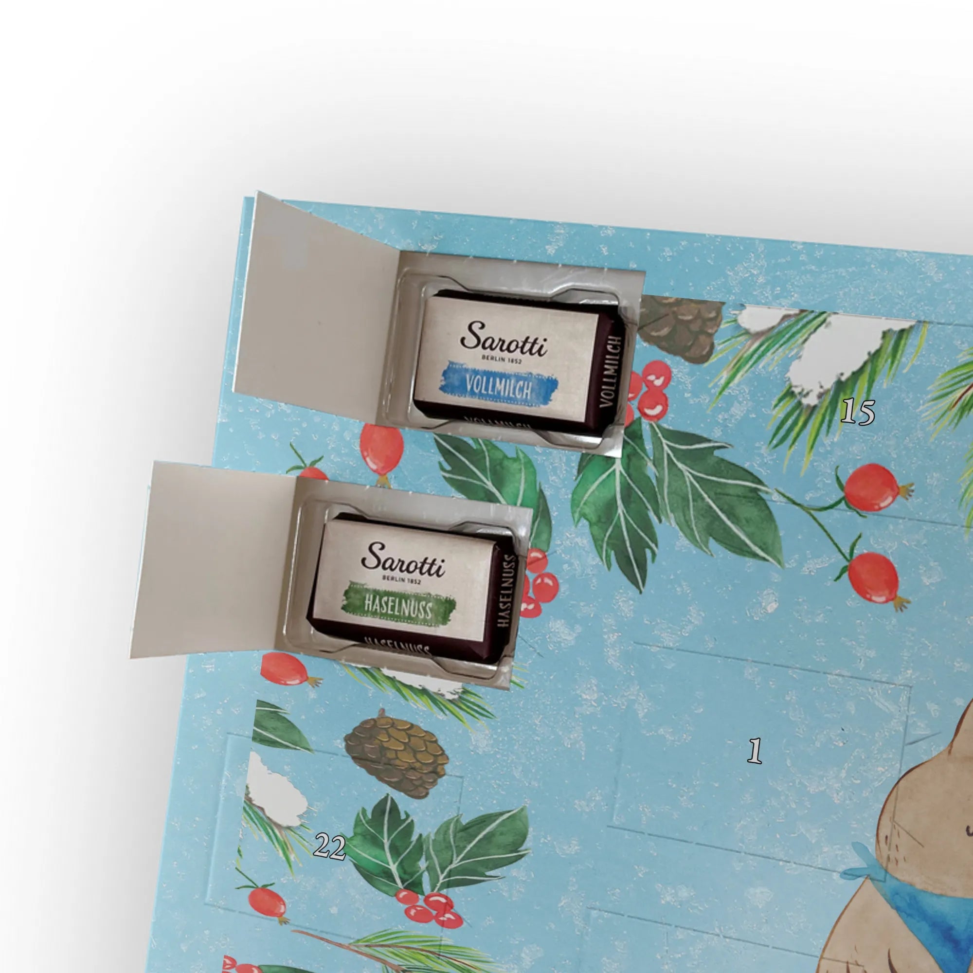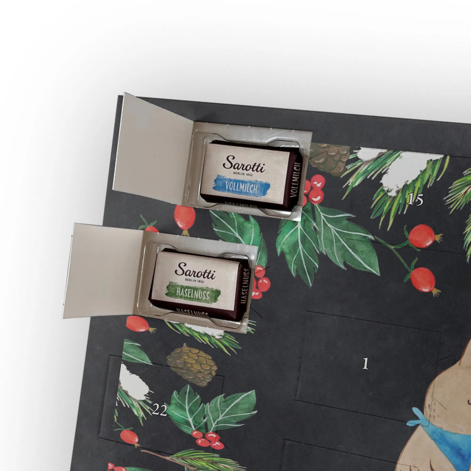 Wundervoller Adventskalender mit persönlicher Note – der Personalisierte Schoko Adventskalender von Mr. & Mrs. Panda ist eine liebevolle Geschenkidee, die dich oder deine Liebsten durch die Dezembertage begleitet. Bedruckt mit einzigartigen Motiven und charmanten Sprüchen von Mr. & Mrs. Panda, kannst du den Kalender mit deinem Namen oder einem kurzen Wunschtext individuell gestalten. Die seidenmatte Oberflächenveredelung bringt die Farben besonders schön zur Geltung, und die bedruckten Seitenflächen sorgen für ein rundum stimmiges Design. Maße: 355 mm x 245 mm x 11 mm. Praktisch: Der Kalender lässt sich sowohl hängen als auch aufstellen. Gefüllt ist er mit 24 einzeln verpackten Schokoladentäfelchen in vier leckeren Geschmacksrichtungen. Insgesamt enthält er 107 g Markenschokolade von Sarotti® und Confiserie Heidel® – Geschmacksrichtungen: Vollmilch, Nougat, Zartbitter und Haselnuss. Wichtig zu wissen: Es handelt sich um einen Kalender gefüllt mit Sarotti® und Confiserie Heidel® Markenschokolade. Ob als persönliches Geschenk, Mitbringsel oder Überraschung – dieser Adventskalender bringt jeden Tag süße Freude und ein Lächeln ins Gesicht.