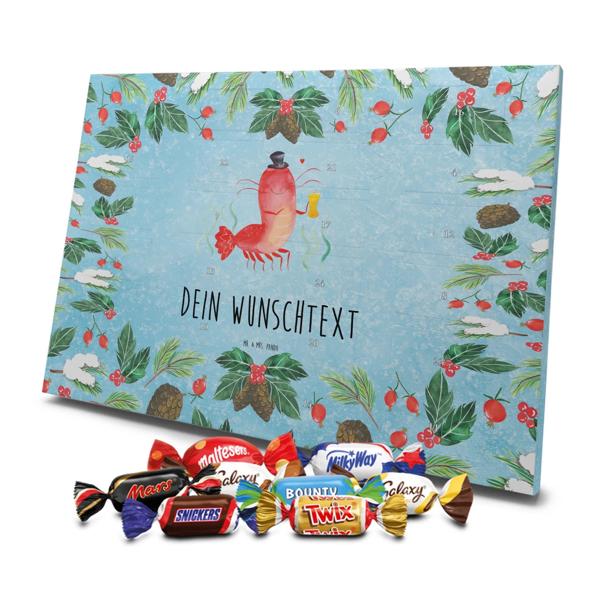 Personalisierter Schoko Adventskalender Hummer Weizen - Kinder Schokolade - Eisblau