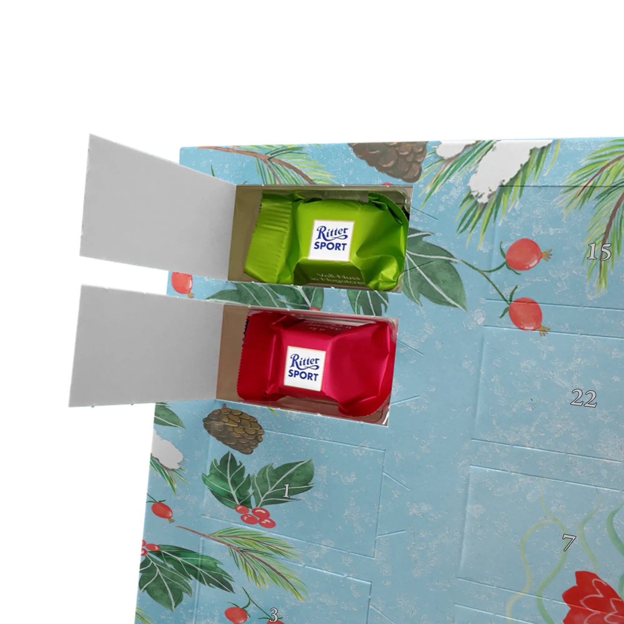 🐼 Personalisierter Schoko Adventskalender, seidenmatt und mit Ritter Sport Schokowürfeln.
