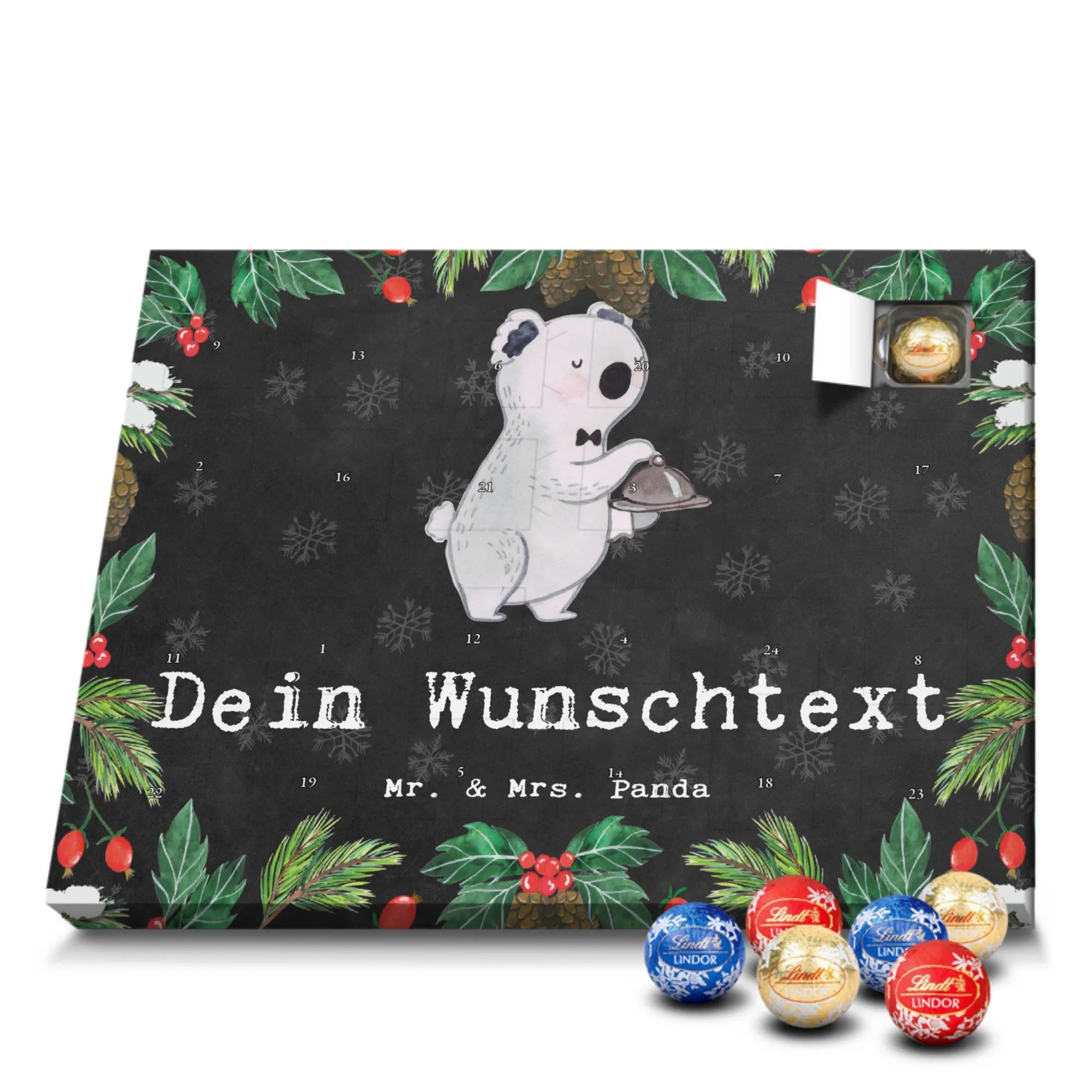 🐼 Schoko Adventskalender personalisiert mit Wunschtext, seidenmatt, gefüllt mit Lindt Hello.