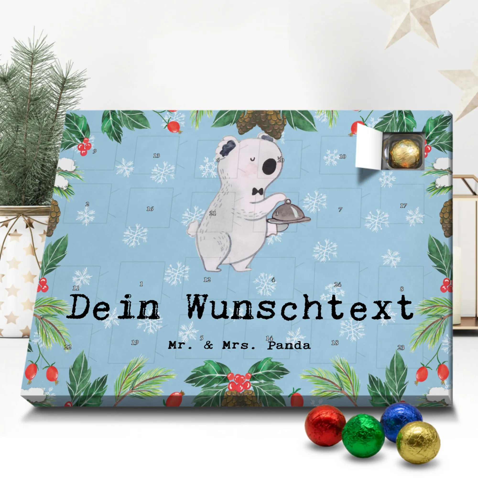 Gestalte Freude: Personalisiere deinen Schoko-Kalender und überrasche mit einem individuellen Adventsgruß von Mr. & Mrs. Panda!
