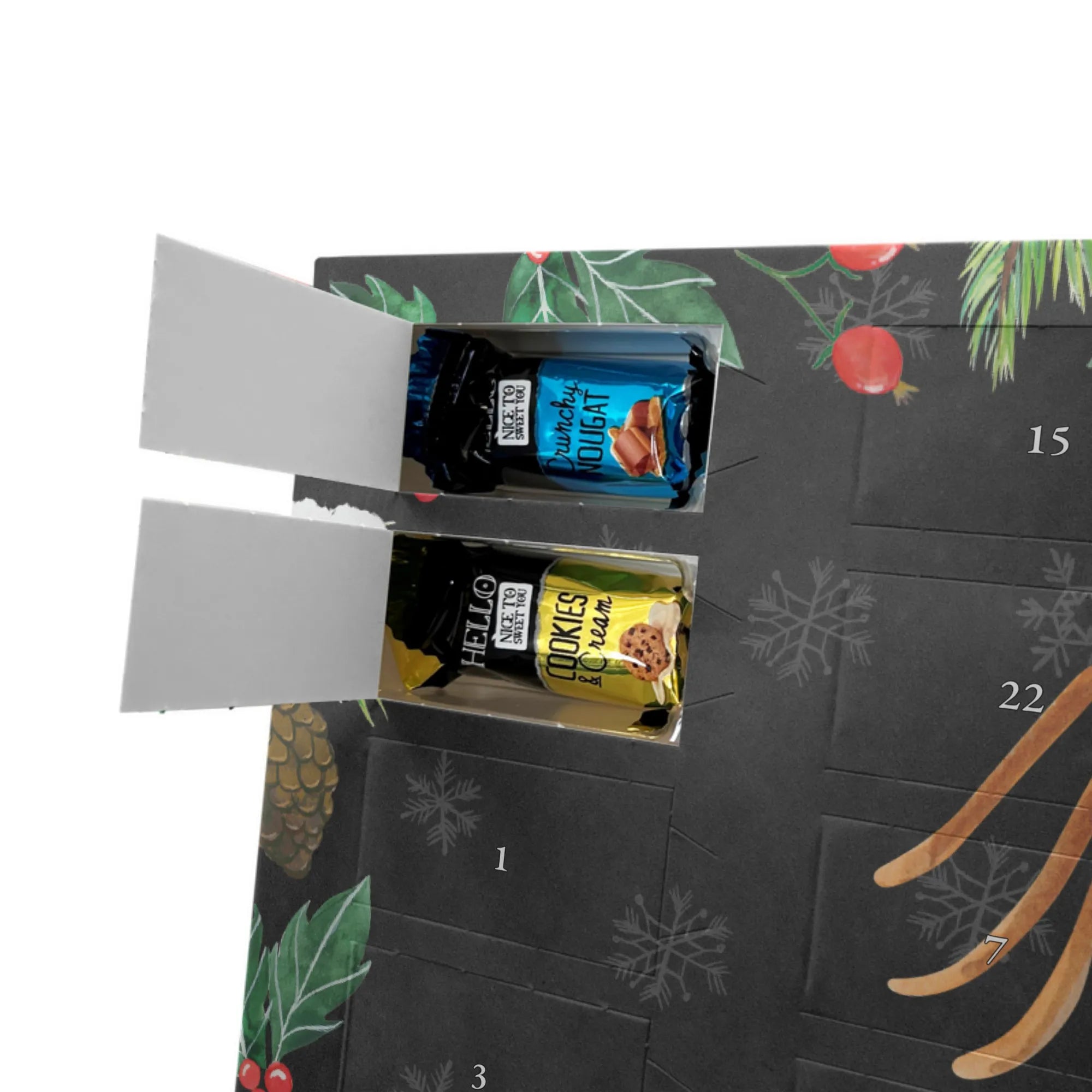Schoko Adventskalender personalisiert – die süße Überraschung von Mr. & Mrs. Panda für die Adventszeit! Unser Kalender ist liebevoll illustriert und mit fröhlichen Sprüchen bedruckt, die du zusätzlich mit deinem Wunschnamen oder einem kurzen Text personalisieren kannst. Die Seitenflächen sind ebenfalls bedruckt, sodass das Design rundum harmonisch ist. Durch die seidenmatte Oberflächenveredelung wirkt alles besonders hochwertig und die brillante Druckqualität setzt deine Motive toll in Szene. Der Kalender kann entweder aufgestellt oder aufgehängt werden und passt damit in jede Dekoration. Gefüllt mit Lindt Hello: Du bekommst 24 einzeln verpackte Schokoladen Mini Sticks in vier verschiedenen Geschmacksrichtungen (Karamell-Schokoladenkuchen, Kekse, Knuspriger Nougat, Erdbeer-Cheesecake). Zutatenliste inklusive. Wichtige Allergenhinweise: enthält Milcheiweiß, Milchzucker, Soja, Weizen und Haselnüsse; kann Mandeln und andere Schalenfrüchte enthalten. Ein persönliches Geschenk mit Qualität und Herz – gemacht für schöne Adventsmomente. Maße: 325 mm x 225 mm x 27 mm.