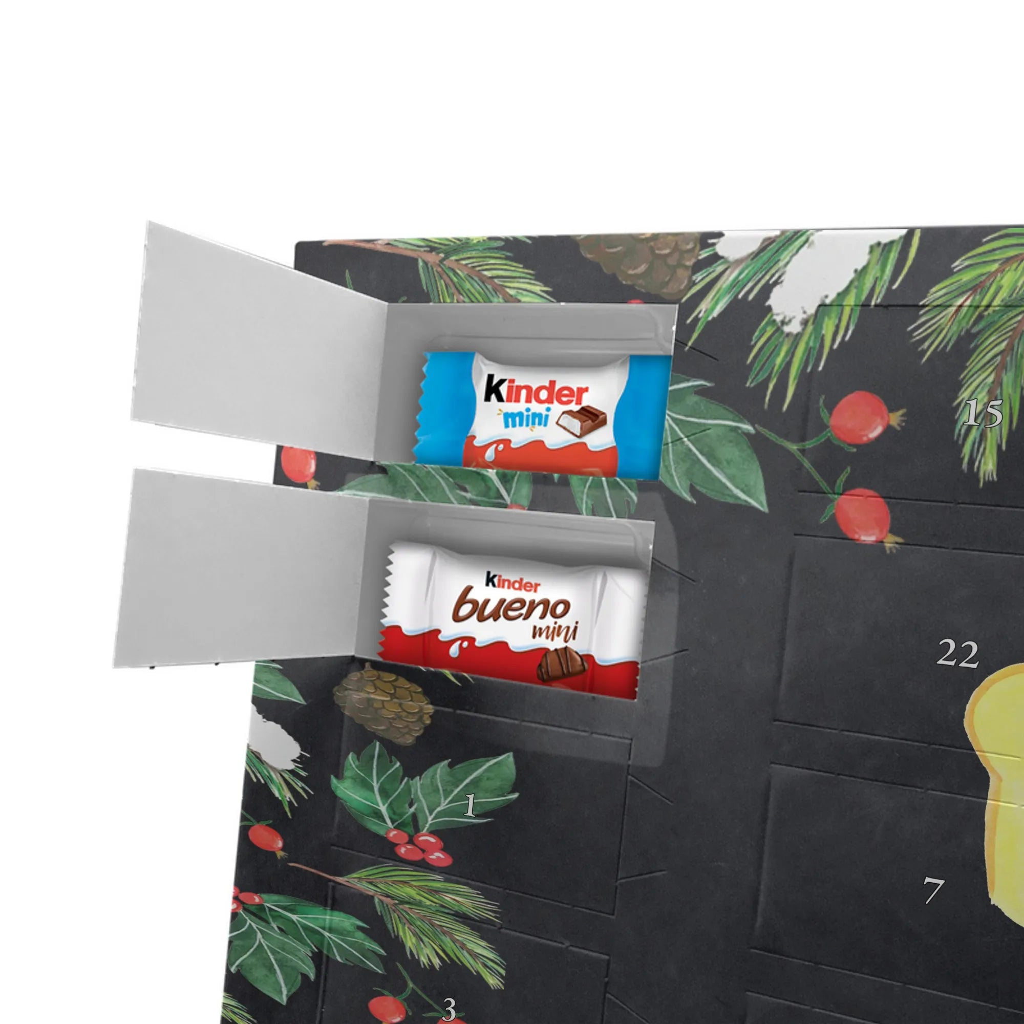 Klein, fein und persönlich – unser Adventskalender mit Namen von Mr. & Mrs. Panda ist das ideale Geschenk, wenn du jemandem die Adventszeit versüßen willst. Der Adventskalender mit Namen wird mit deinem Wunschtext versehen und ist mit wunderschönen Motiven & Sprüchen von Mr. & Mrs. Panda bedruckt. Die brillante Druckqualität in Verbindung mit einer seidenmatten Veredelung sorgt für einen sanften Glanz und eine tolle Haptik. Auch die Seitenflächen sind bedruckt, sodass der Kalender rundum schön wirkt. Maße: 355 mm x 245 mm x 11 mm – optimal für Regal, Fensterbrett oder als Deko an der Wand. Besonderheit: kann aufgehängt oder aufgestellt werden. Gefüllt mit kinder® Schokolade: Adventskalender gefüllt mit kinder® Schokolade; Inhalt: kinder® Schoko-Bons, kinder® Bueno mini und kinder® Schokolade mini. Verschenke eine persönliche Adventsfreude, die süße Momente garantiert und mit liebevollem Design überzeugt – Mr. & Mrs. Panda macht's möglich.
