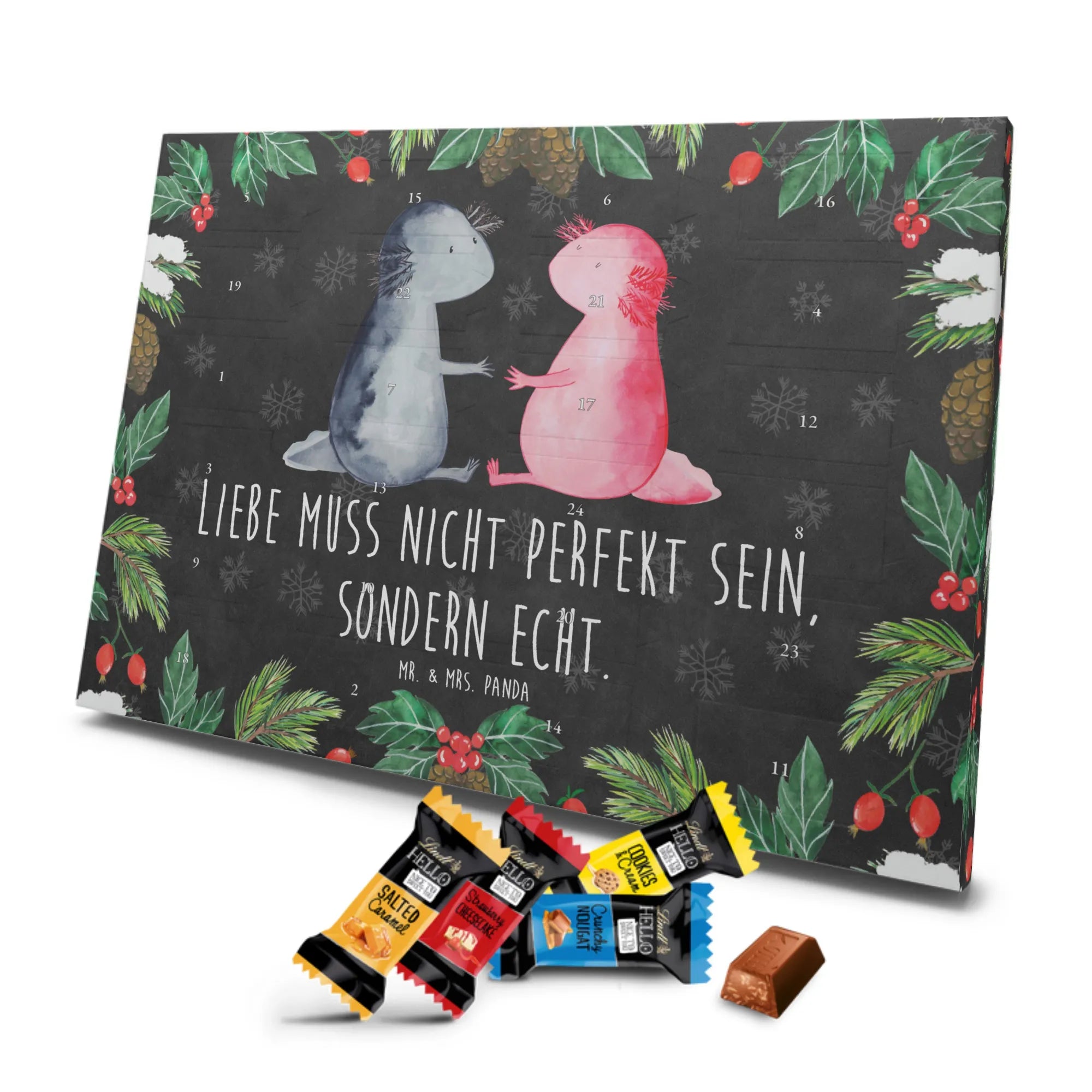 pralinen adventskalender Axolotl Liebe - Lindt LINDOR - mit Spruch - Kreidetafel