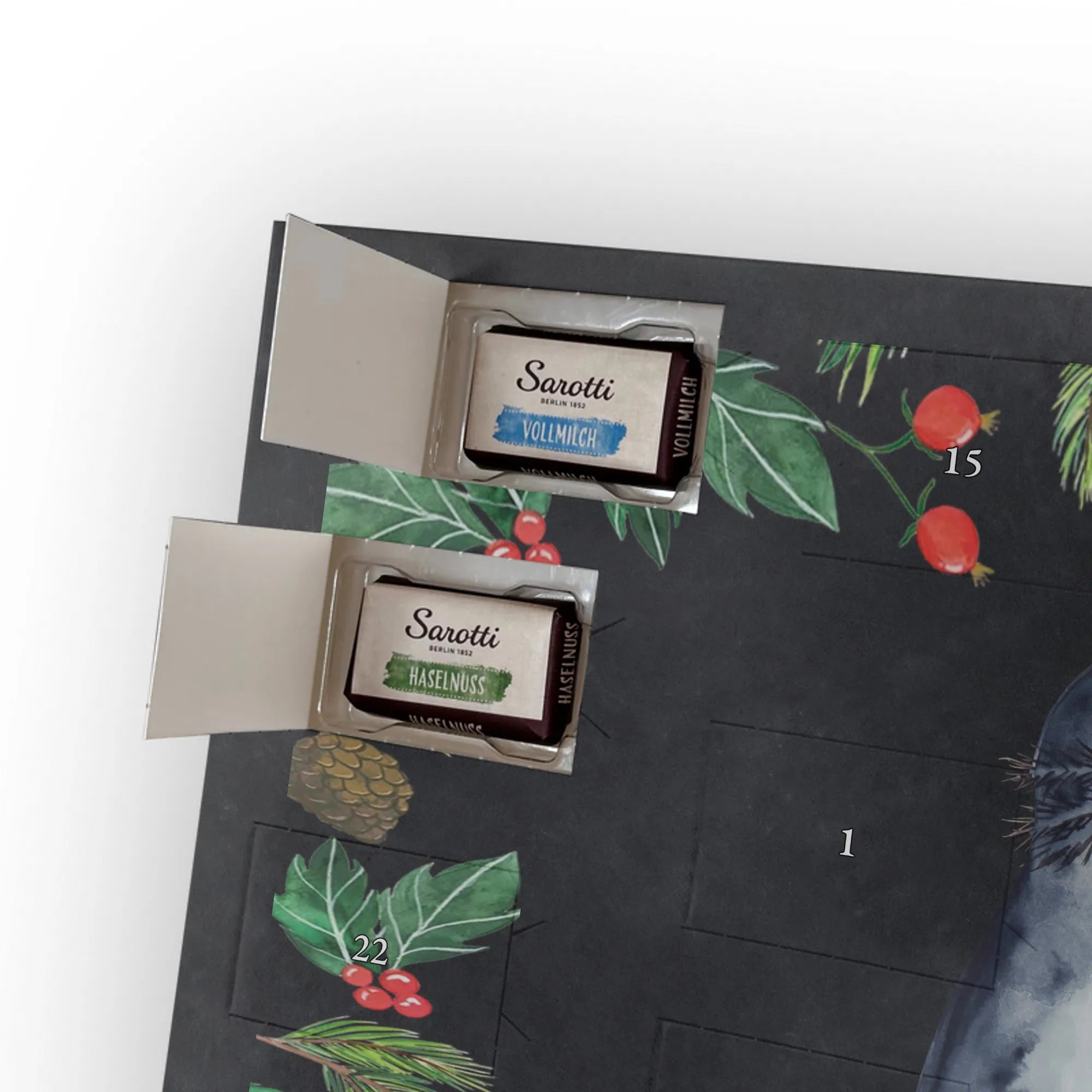 🐼 SCHOKOLADEN-ADVENTSKALENDER: Edler, seidenmatter Druck mit liebevollen Illustrationen.