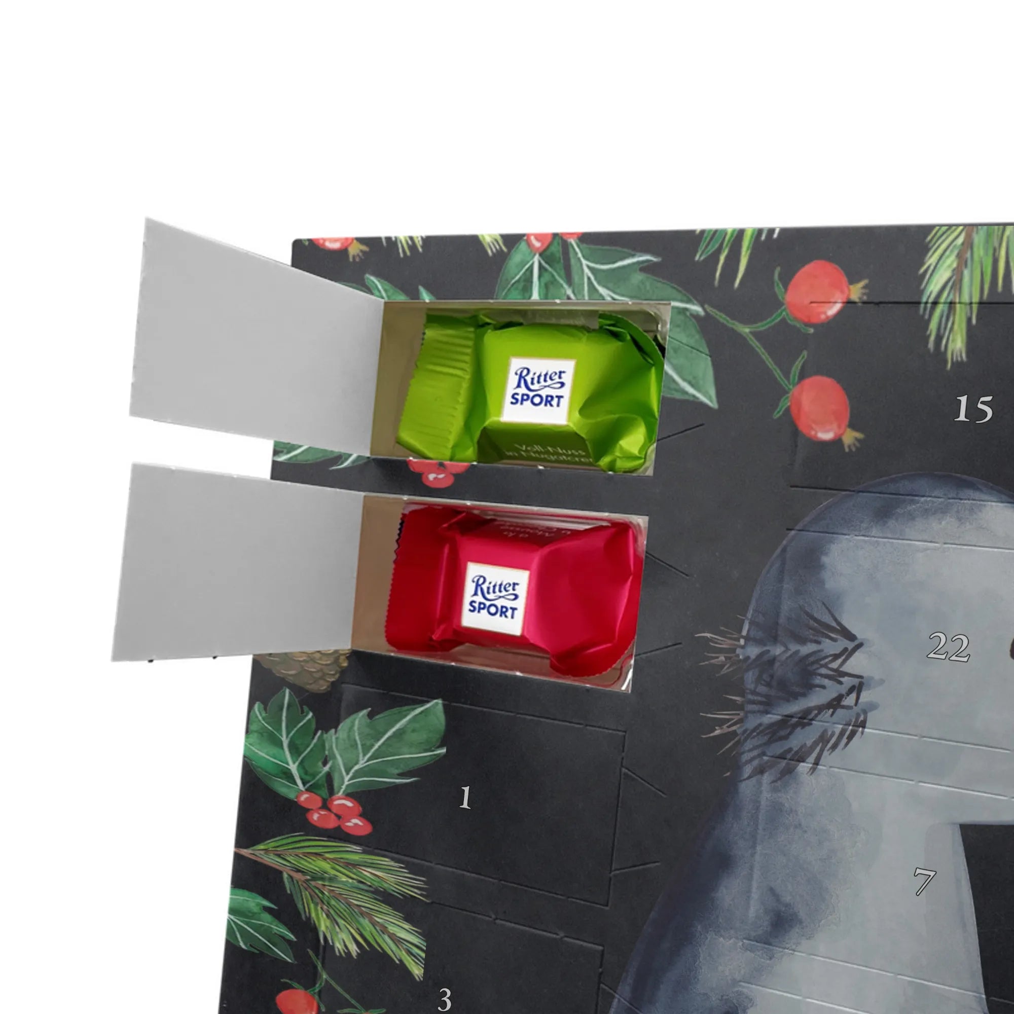 🐼 24 Türchen gefüllt mit Ritter Sport Schokowürfeln – perfekte Adventsüberraschungen.