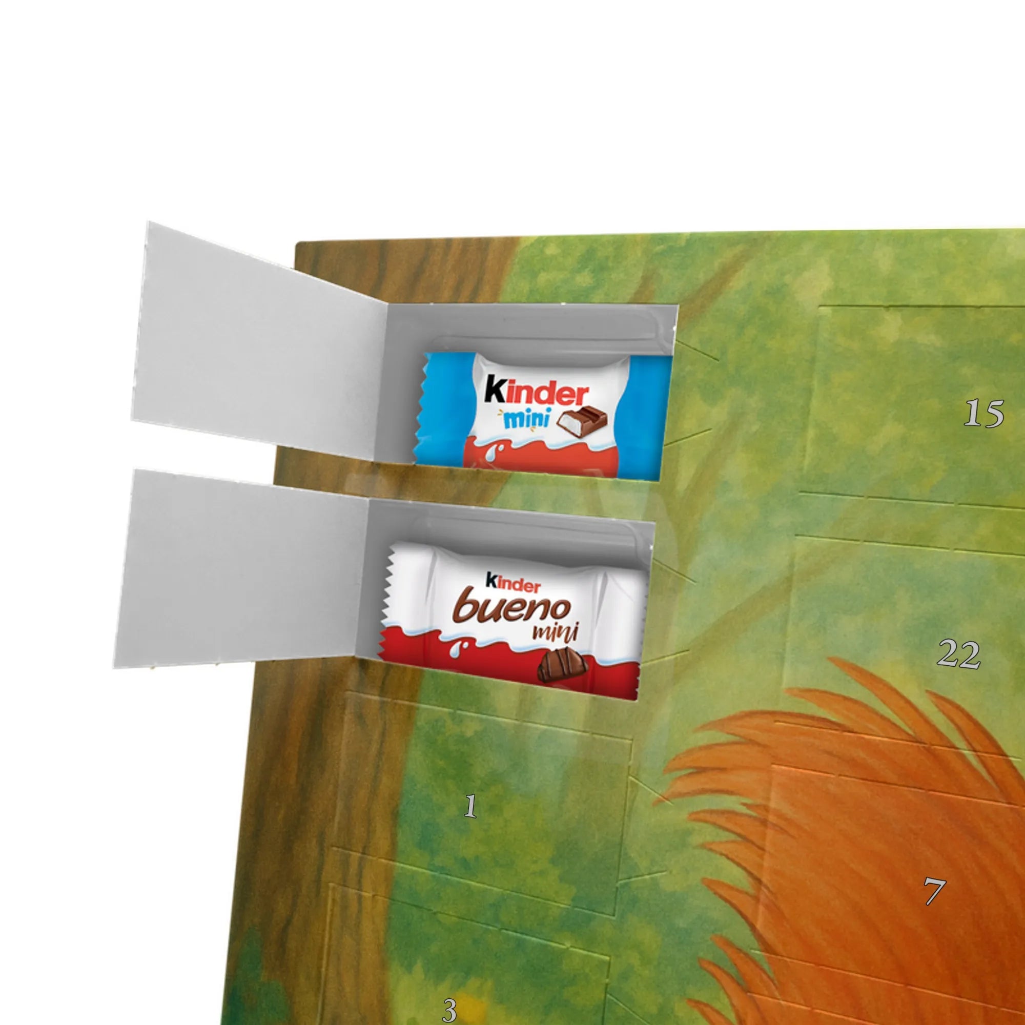 Wunderschöner Schoko Adventskalender von Mr. & Mrs. Panda – perfekt, wenn du die Vorweihnachtszeit mit einem liebevoll gestalteten Kalender versüßen möchtest. Unser Kalender ist bedruckt mit wunderschönen Motiven & Sprüchen von Mr. & Mrs. Panda und eignet sich hervorragend als Geschenk für Freunde, Familie oder einfach für dich selbst. Er ist nicht personalisierbar, dafür aber mit viel Liebe zum Detail gestaltet. Die brillante Druckqualität mit seidenmatter Oberflächenveredelung sorgt für edles Aussehen, und die bedruckten Seitenflächen geben dem Kalender einen wertigen Gesamteindruck. Maße: 355 mm x 245 mm x 11 mm. Besonderheit: kann aufgehängt oder aufgestellt werden – so findest du immer den perfekten Platz bei dir zuhause. Gefüllt mit Markenname Schokolade: Adventskalender gefüllt mit kinder® Schokolade. Inhalt: kinder® Schoko-Bons, kinder® Bueno mini und kinder® Schokolade mini. Der Kalender bietet 24 Türchen mit kleinen Überraschungen, die Kinderherzen höherschlagen lassen und Erwachsene schmunzeln. Er ist robust verarbeitet und ideal für den täglichen Genuss in der Adventszeit. Ob dekorativ auf der Kommode oder an der Wand aufgehängt – er bringt Freude und süße Momente in die Vorweihnachtszeit. Bestelle jetzt und mach dir oder deinen Lieben die Adventszeit ein bisschen süßer!
