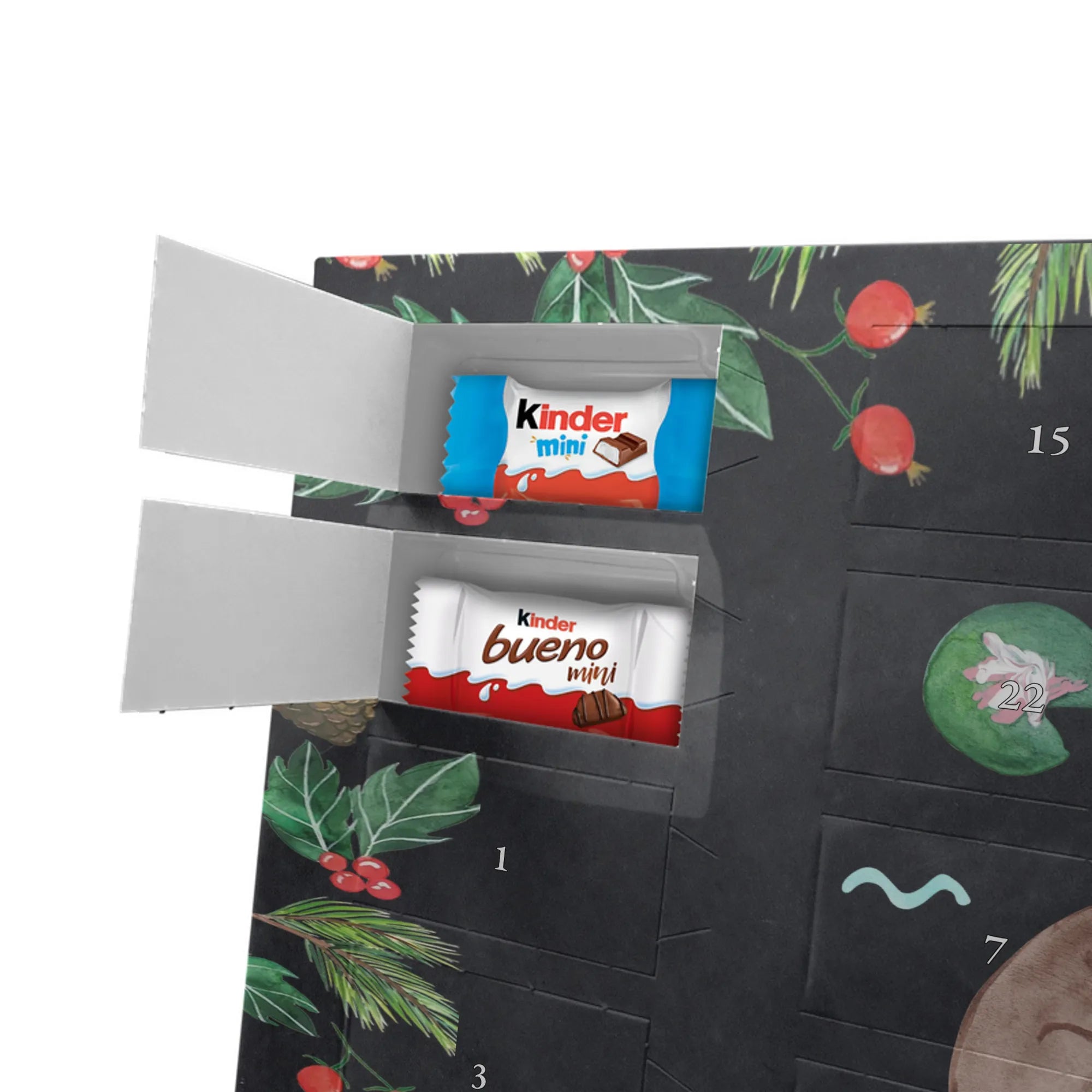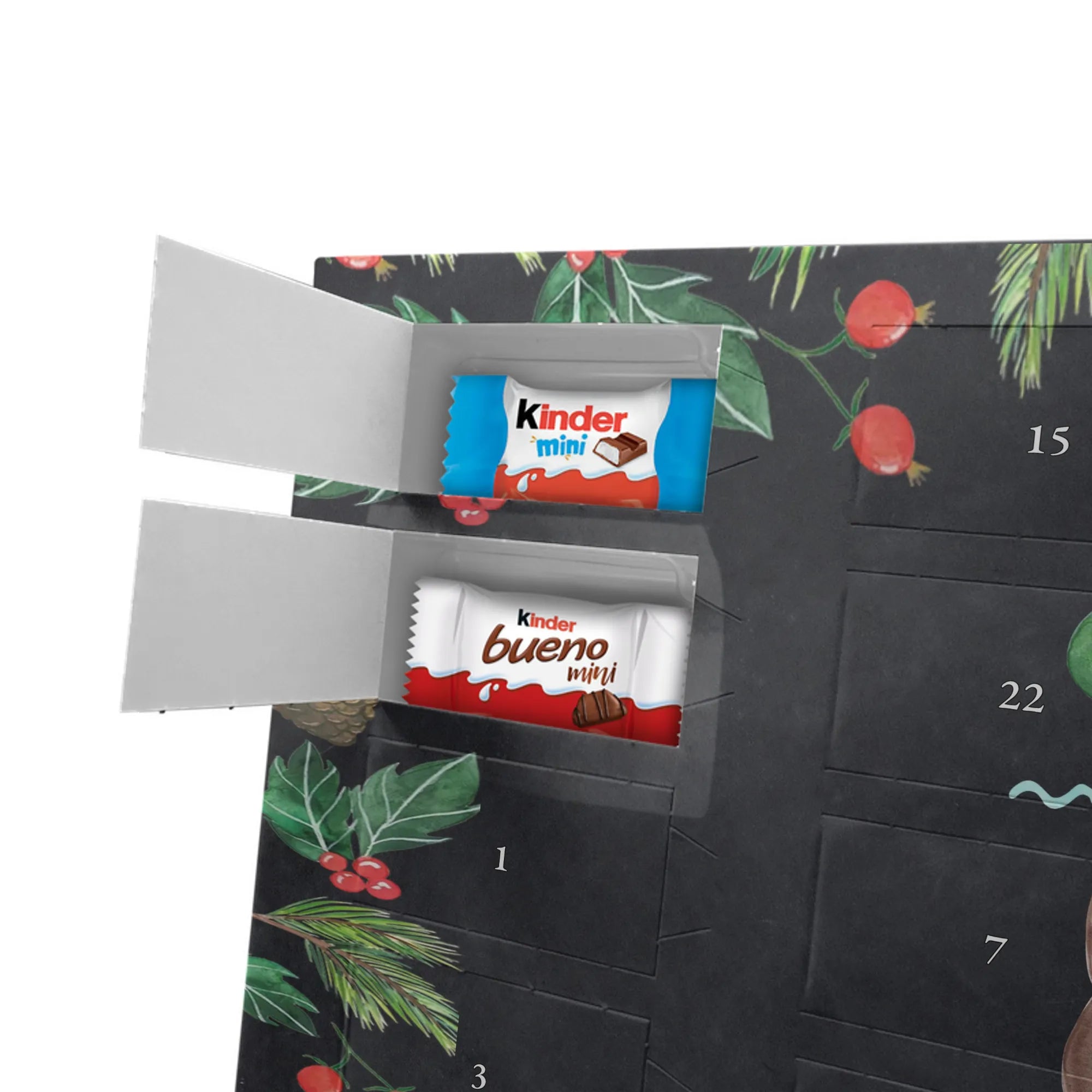 Wunderschöner Schoko Adventskalender von Mr. & Mrs. Panda – perfekt, wenn du die Vorweihnachtszeit mit einem liebevoll gestalteten Kalender versüßen möchtest. Unser Kalender ist bedruckt mit wunderschönen Motiven & Sprüchen von Mr. & Mrs. Panda und eignet sich hervorragend als Geschenk für Freunde, Familie oder einfach für dich selbst. Er ist nicht personalisierbar, dafür aber mit viel Liebe zum Detail gestaltet. Die brillante Druckqualität mit seidenmatter Oberflächenveredelung sorgt für edles Aussehen, und die bedruckten Seitenflächen geben dem Kalender einen wertigen Gesamteindruck. Maße: 355 mm x 245 mm x 11 mm. Besonderheit: kann aufgehängt oder aufgestellt werden – so findest du immer den perfekten Platz bei dir zuhause. Gefüllt mit Markenname Schokolade: Adventskalender gefüllt mit kinder® Schokolade. Inhalt: kinder® Schoko-Bons, kinder® Bueno mini und kinder® Schokolade mini. Der Kalender bietet 24 Türchen mit kleinen Überraschungen, die Kinderherzen höherschlagen lassen und Erwachsene schmunzeln. Er ist robust verarbeitet und ideal für den täglichen Genuss in der Adventszeit. Ob dekorativ auf der Kommode oder an der Wand aufgehängt – er bringt Freude und süße Momente in die Vorweihnachtszeit. Bestelle jetzt und mach dir oder deinen Lieben die Adventszeit ein bisschen süßer!