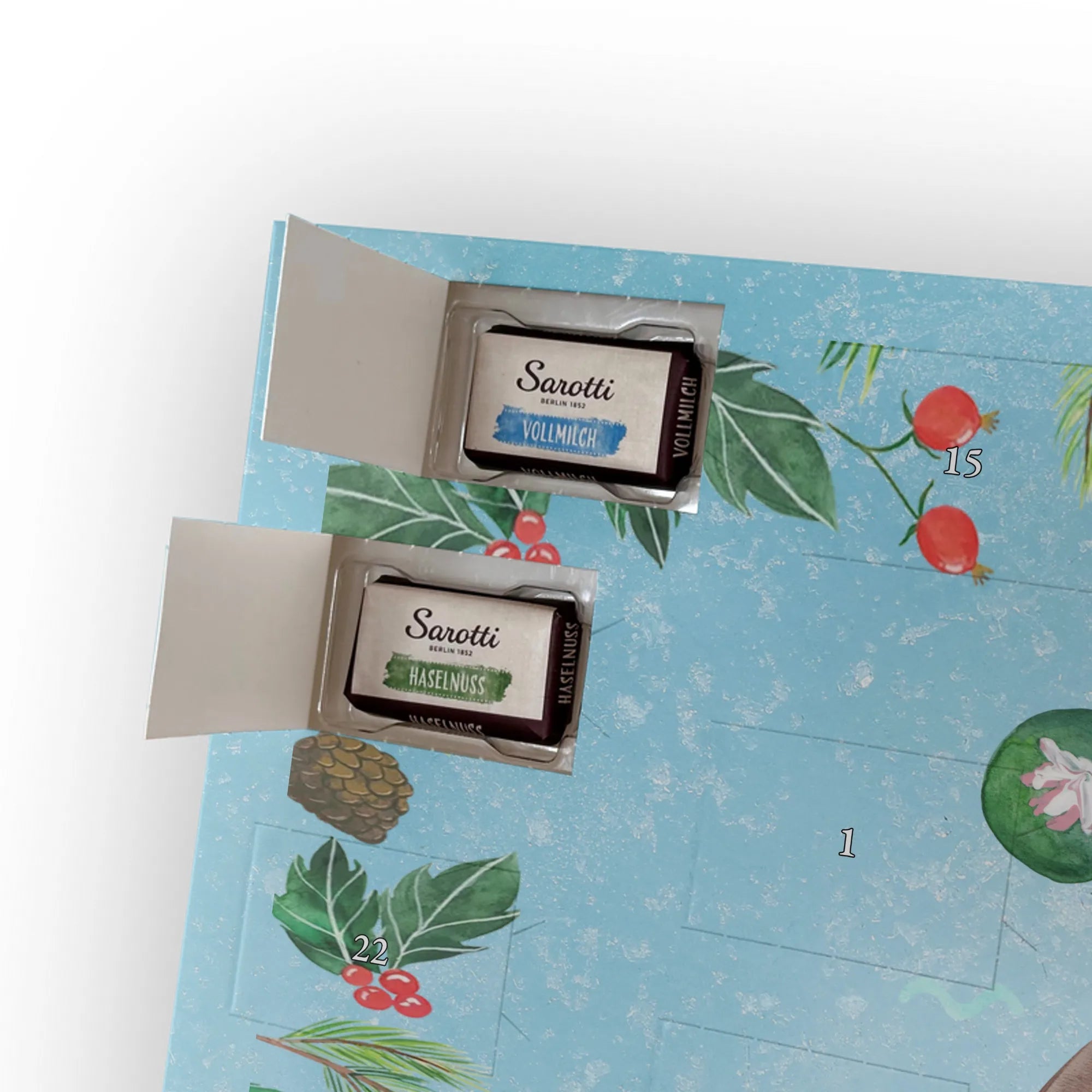 Hol dir den Adventszauber: Verwöhne dich oder deine Liebsten mit unserem liebevoll bedruckten Schoko Adventskalender – jetzt entdecken und Vorfreude schenken!