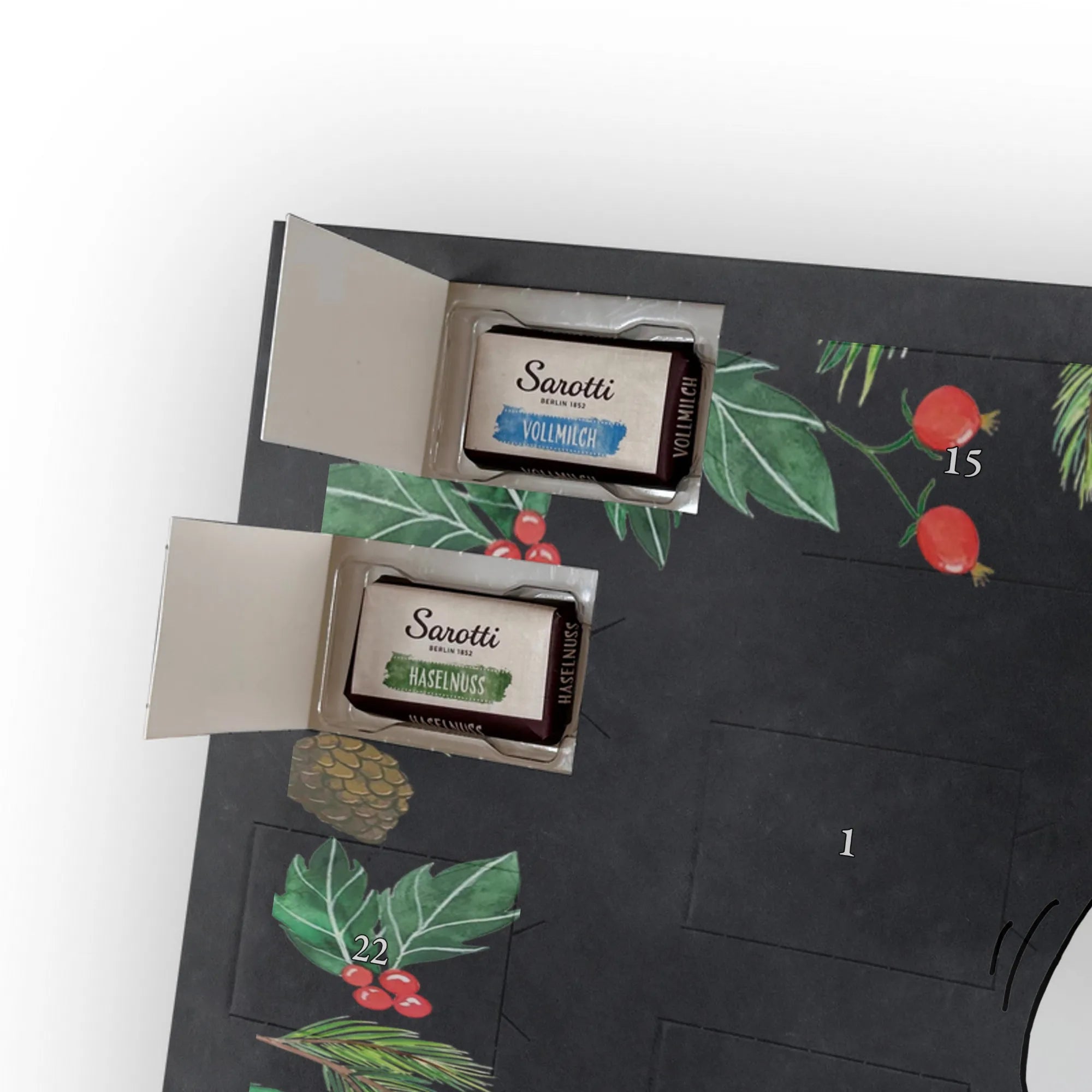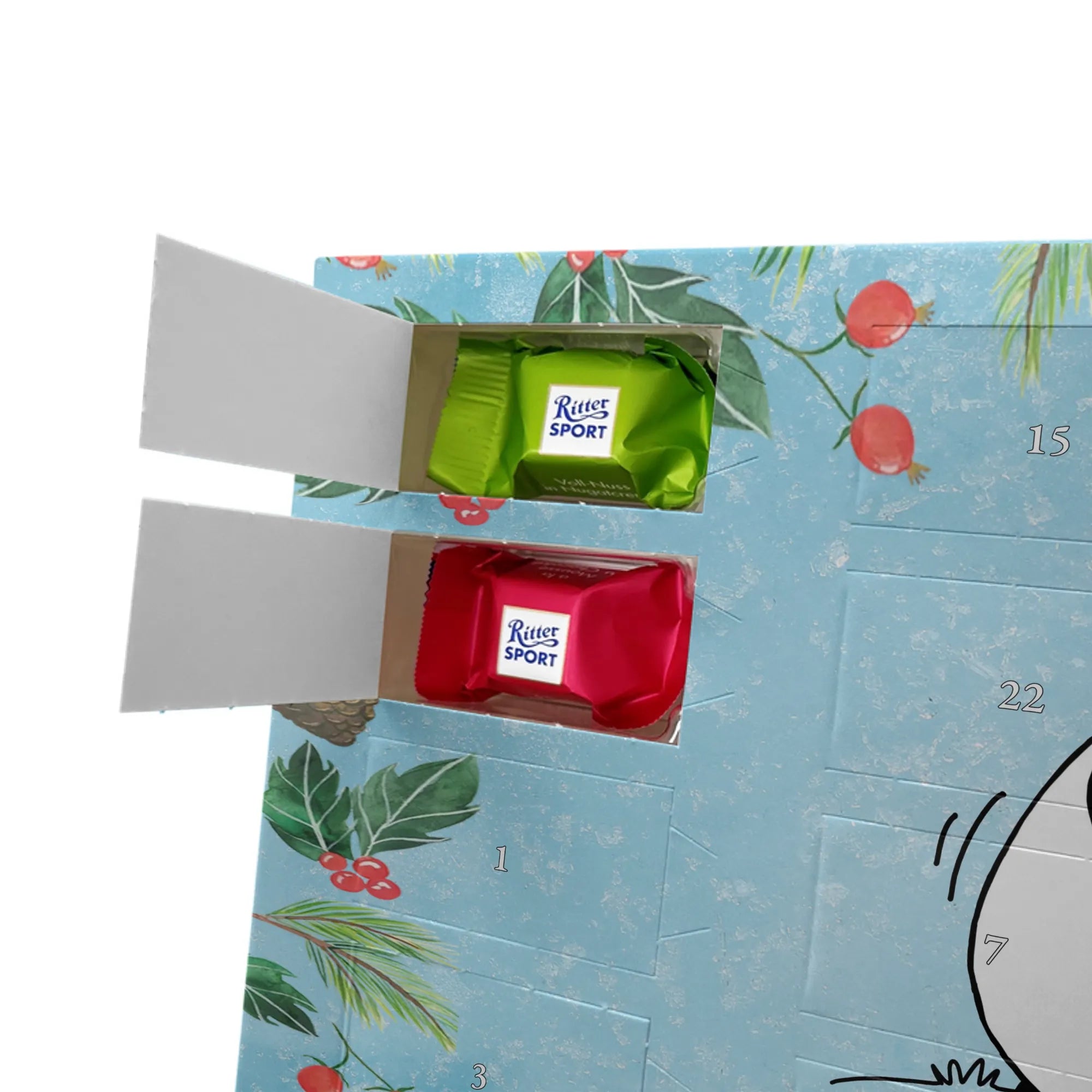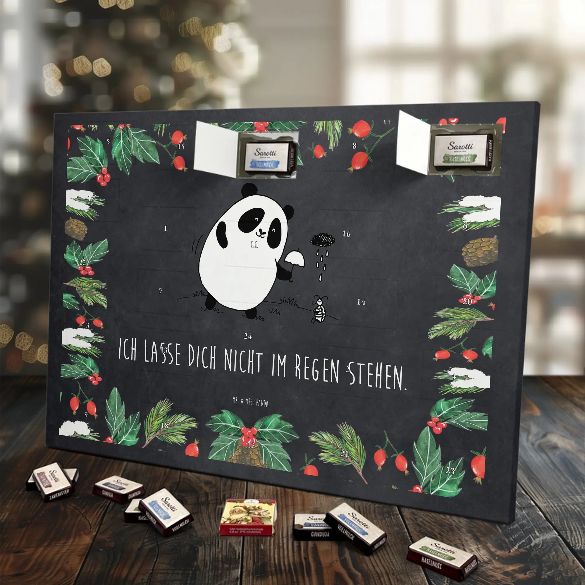 🐼 Schoko-Adventskalender: Liebevolles Design, seidenmatt, brillanter Druck – ein Hingucker.