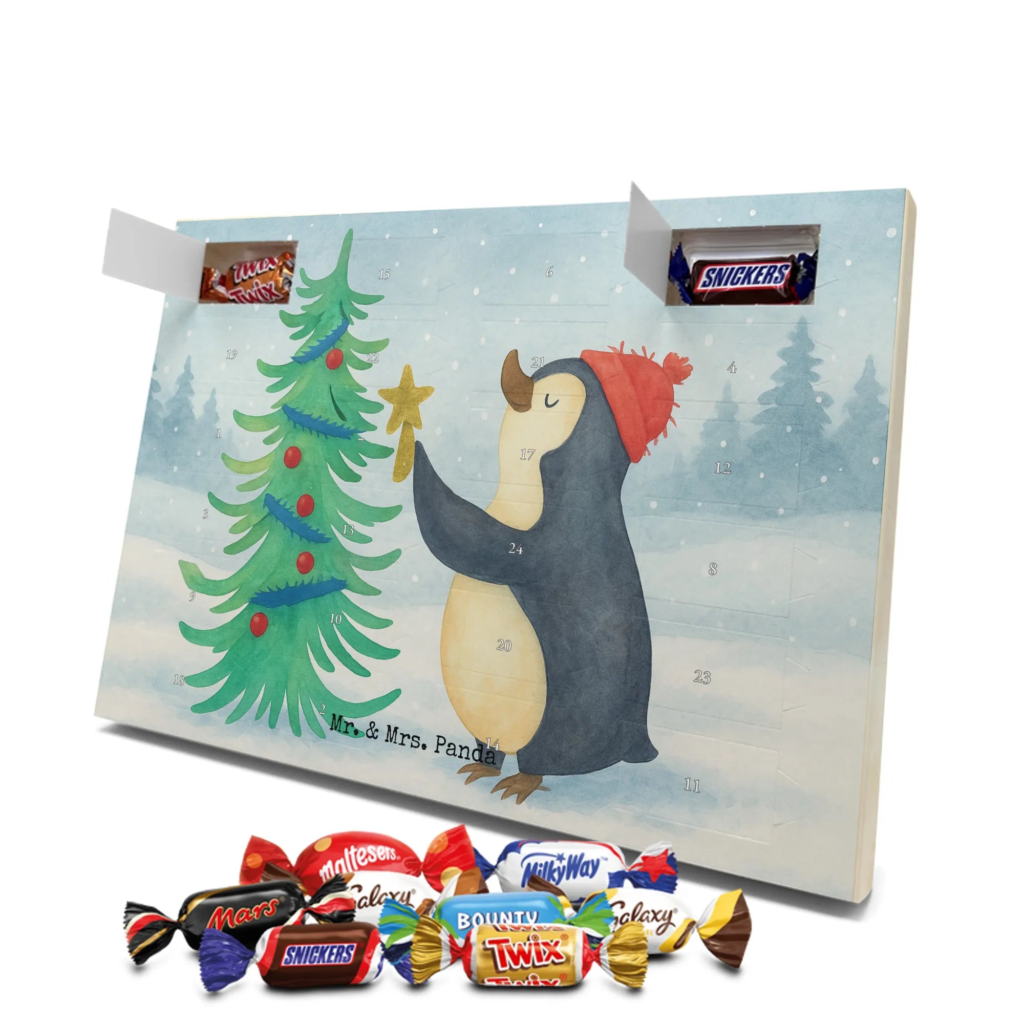 Mach die Adventszeit süßer: Entdecke unseren bedruckten Schokoladen Adventskalender von Mr. & Mrs. Panda und verschenke täglich Freude!