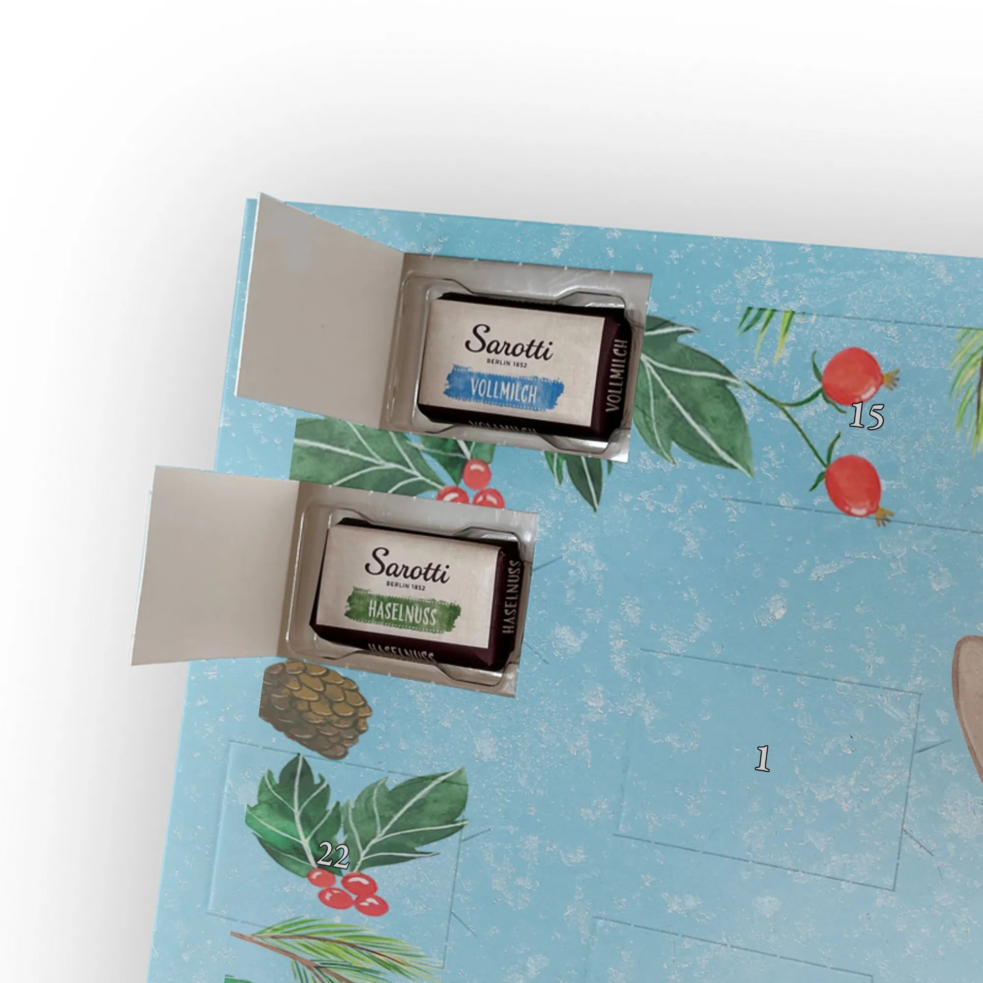🐼 Schoko-Adventskalender: Liebevolles Design, seidenmatt, brillanter Druck – ein Hingucker.