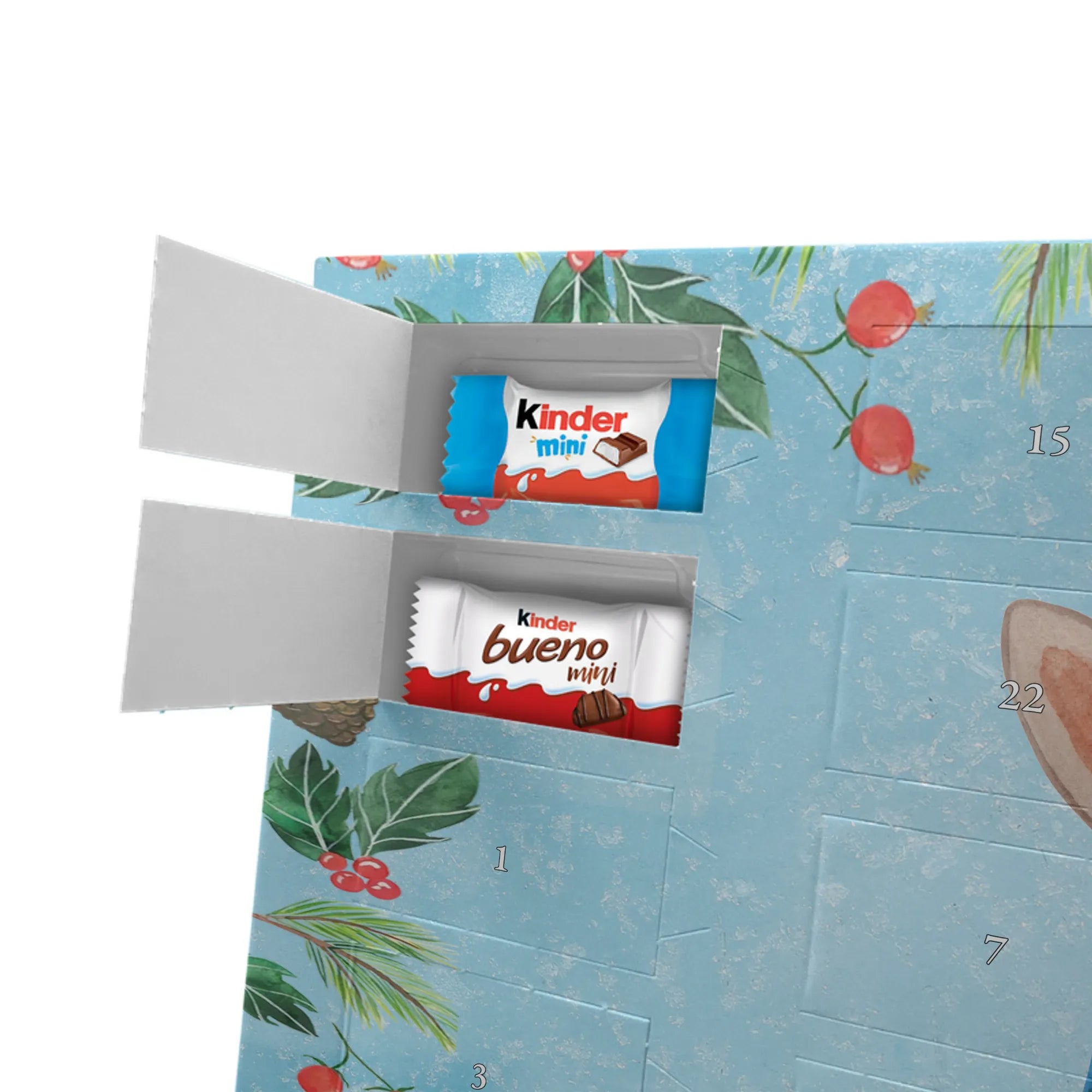 Adventskalender mit Schokolade – liebevoll gestaltet von Mr. & Mrs. Panda. Dieser niedliche Kalender ist bedruckt mit wunderschönen Motiven & Sprüchen von Mr. & Mrs. Panda und trotzdem nicht personalisierbar. Du bekommst brillante Druckqualität mit seidenmatter Oberflächenveredelung sowie bedruckte Seitenflächen, die dem Kalender ein hochwertiges Finish verleihen. Maße: 355 mm x 245 mm x 11 mm. Ein tolles Extra: kann aufgehängt oder aufgestellt werden, sodass du ihn flexibel platzieren kannst. Gefüllt mit Markenname Schokolade: Adventskalender gefüllt mit kinder® Schokolade. Inhalt: kinder® Schoko-Bons, kinder® Bueno mini und kinder® Schokolade mini. Die 24 Türchen sind liebevoll befüllt und sorgen jeden Tag für ein Lächeln – ideal für Kinder, Paare oder als kleines Geschenk für Freunde. Robust und dekorativ zugleich, bringt dieser Adventskalender süße Vorfreude in dein Zuhause. Verschenke oder genieße eine adventliche Zeit voller kleiner, schokoladiger Überraschungen!