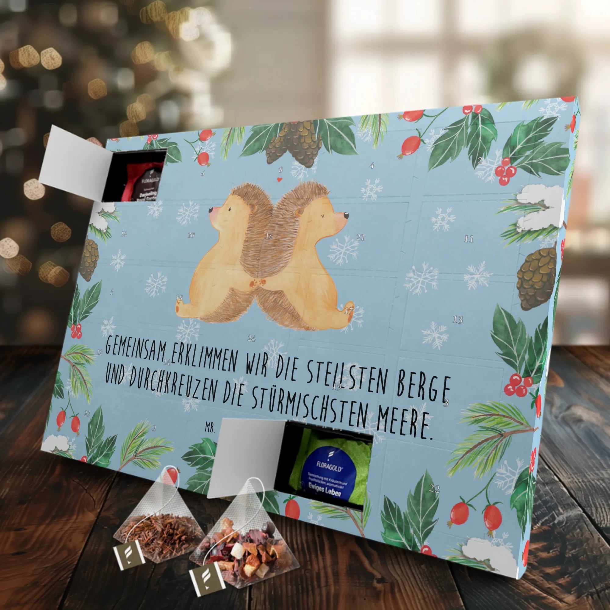 Der wunderschöne Tee Adventskalender von Mr. & Mrs. Panda ist das perfekte Geschenk für Verliebte und erwartet dich mit einem ganz besonderen Motiv: zwei Igel, die händchenhaltend die Welt erobern. Dieser Adventskalender ist ideal, um die Vorfreude auf die besinnliche Weihnachtszeit gemeinsam zu genießen.