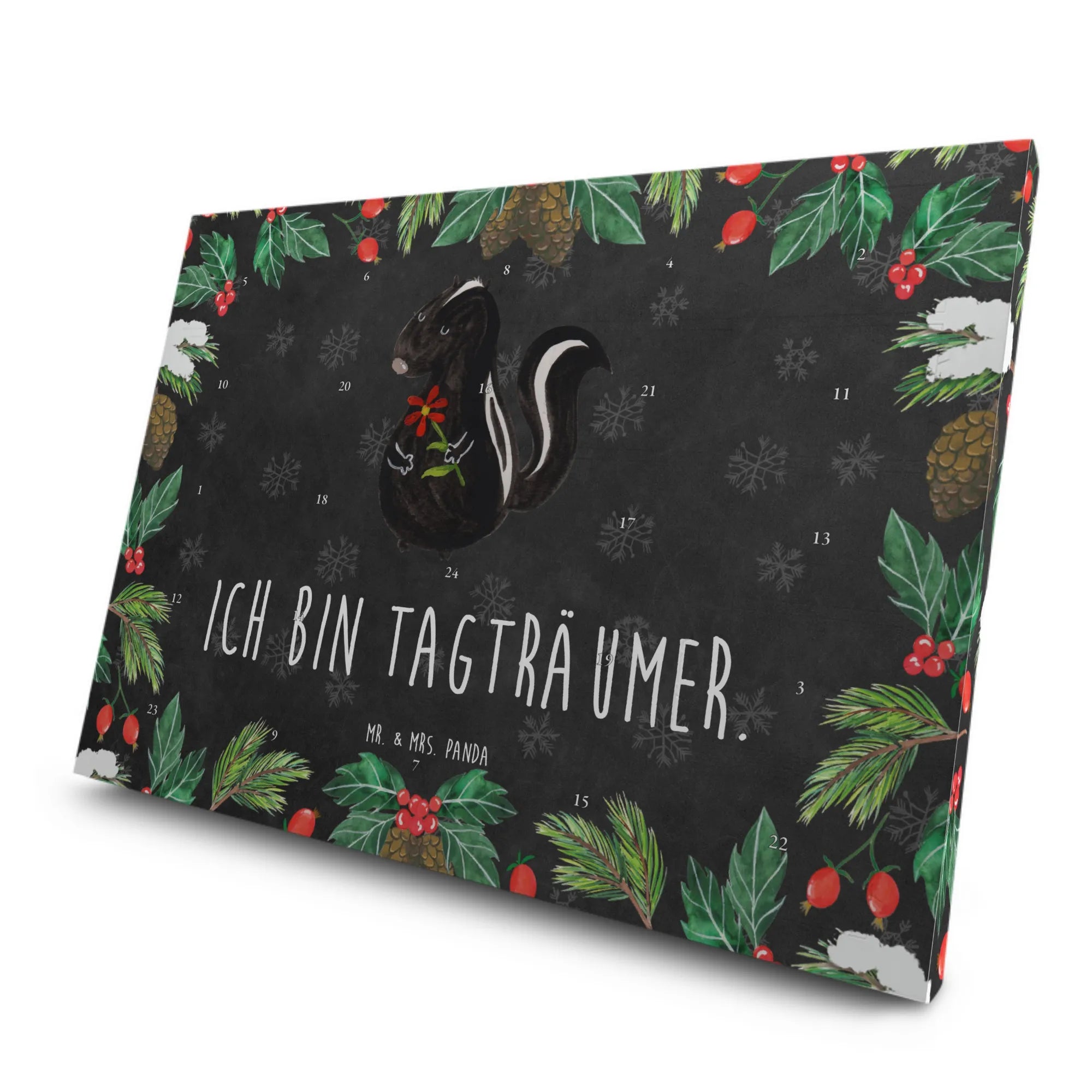 Der wundervolle Tee Adventskalender mit dem süßen Stinktier-Motiv "Stinktier Blume" aus der speziellen Stinktier-Kollektion von Mr. & Mrs. Panda ist das perfekte Geschenk für all jene, die sich auf besondere Weise auf die Adventszeit einstimmen möchten.