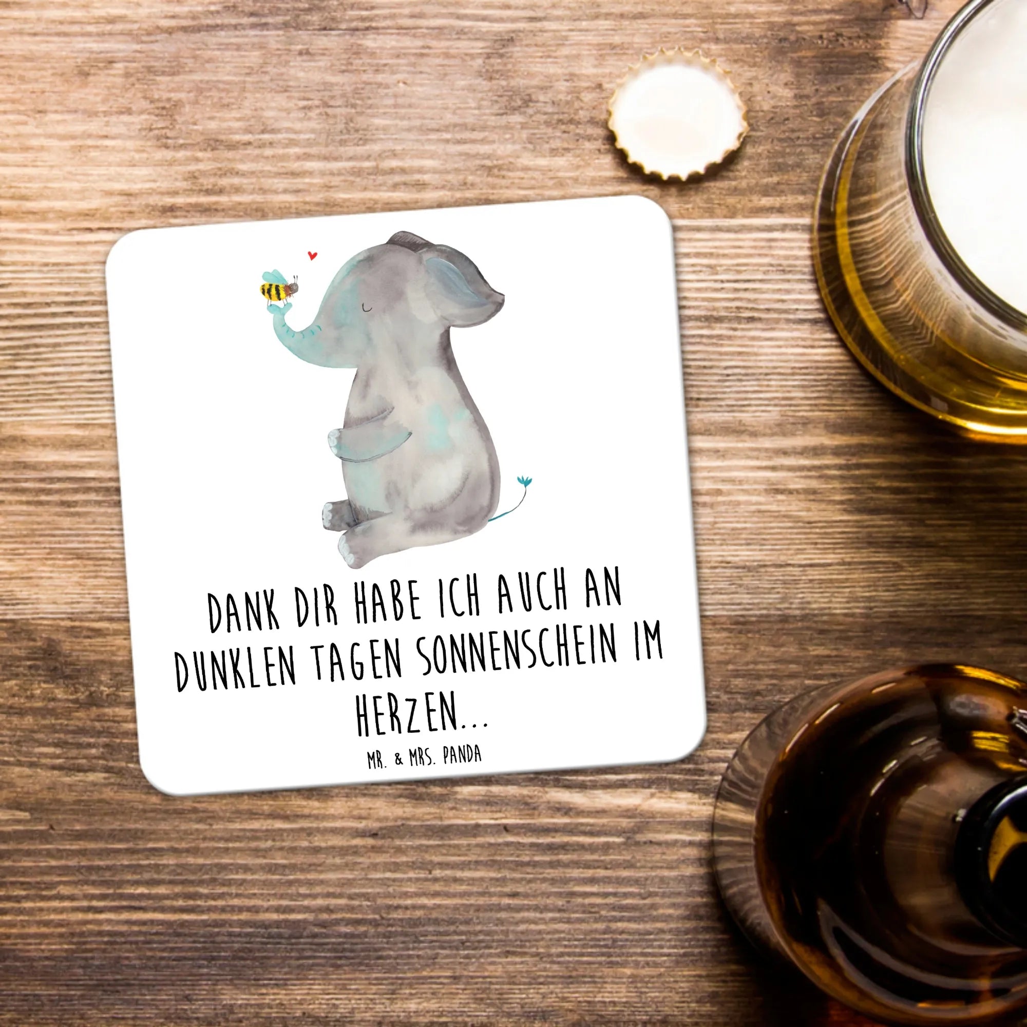 Untersetzer Set Elefant Biene - 15er Set - mit Spruch