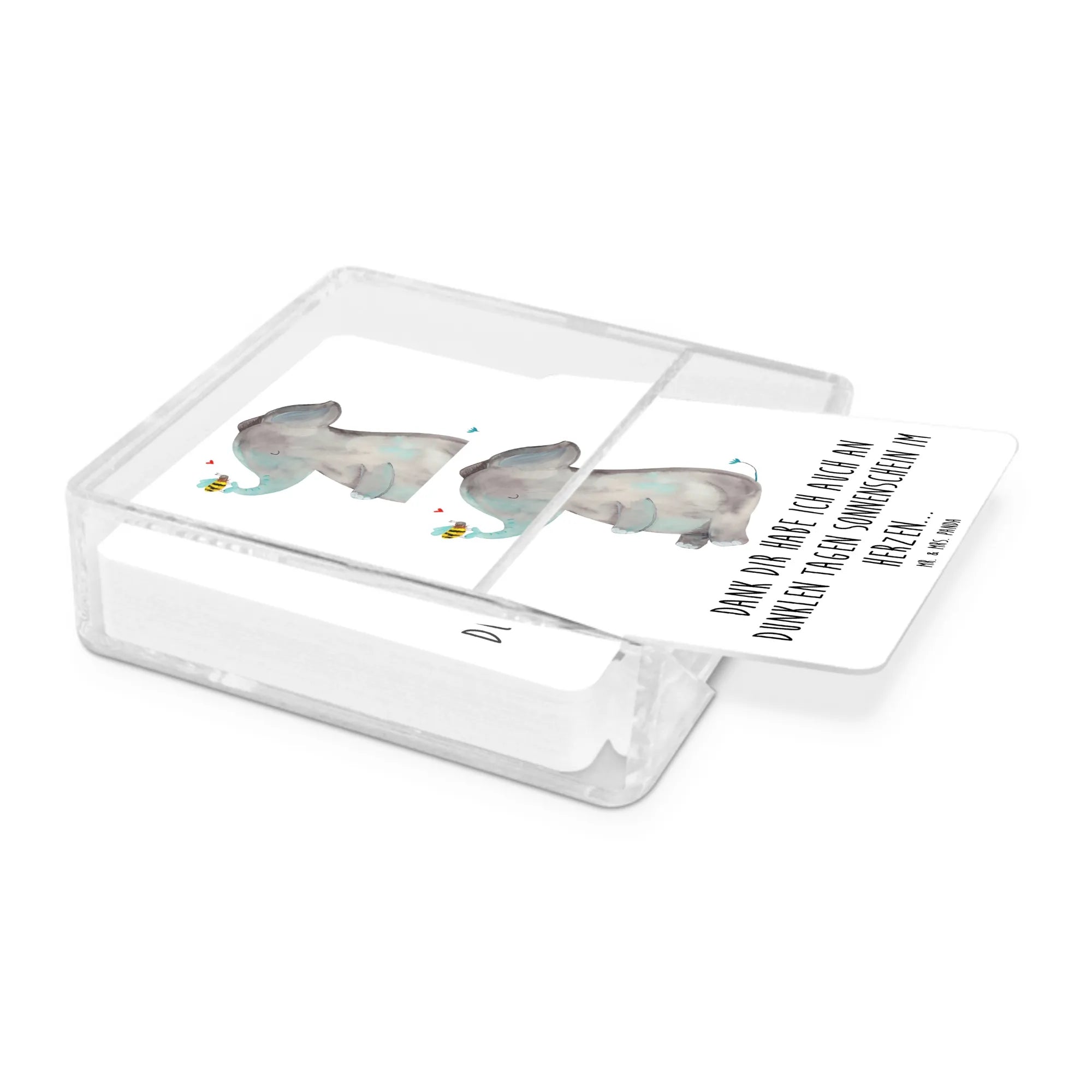 In diesem entzückenden Bild hält ein Elefant achtsam eine Biene auf seinem Rüssel, eine bezaubernde Darstellung der Schönheit in der Liebe zu den kleinsten Kreaturen. Diese Illustration von Mr. & Mrs. Panda ist ein zauberhaftes Liebesgeschenk, das zum Nachdenken anregt und Herzen wärmt. Der Spruch 'Dank dir habe ich auch an dunklen Tagen Sonnenschein im Herzen...' ist eine Liebeserklärung, die sowohl Einzigartigkeit ausstrahlt als auch die universelle Wahrheit vermittelt, dass Liebe die Dunkelheit vertreiben kann. Ideal als Liebesbeweis, Jahrestagsgeschenk oder einfach, um jeden Tag eine Dosis Liebe zu verteilen.