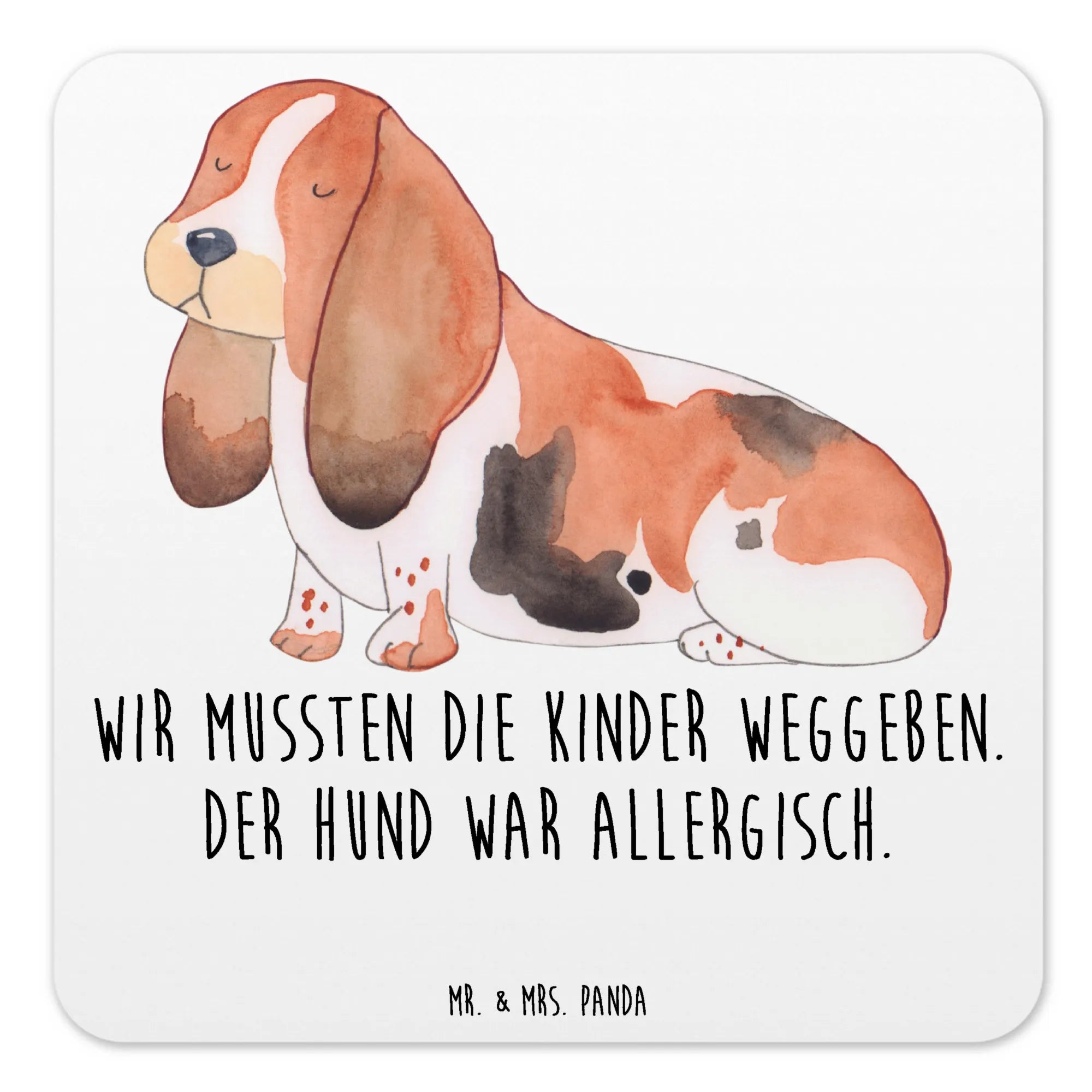 Mit seinem bezaubernden Äußeren und der liebevollen Art hat dieser Basset Hound das Zeug dazu, zum Mittelpunkt deiner Welt zu werden! Der witzige Spruch "Wir mussten die Kinder weggeben. Der Hund war allergisch" bringt nicht nur zum Lachen, sondern wirft auch einen liebevollen Blick auf die Prioritäten, die wir setzen, wenn es um unsere Lieben geht. Dieser charmante Hund ist die perfekte Wahl für kinderlose Paare und bringt Ruhe und Freude in jeden Haushalt. Die langen Ohren und der treue Blick seines Gesichts strahlen so viel Zuneigung aus – nichts macht mehr Spaß, als mit ihm zu schmusen und die Welt zu entdecken! Hundeliebe bringt Menschen zusammen, und das Aufeinandertreffen mit einem Basset Hound ist ein ganz besonderes Erlebnis, das man nie vergessen sollte. Lass uns gemeinsam über die Absurditäten des Lebens schmunzeln und die Liebe zu unseren vierbeinigen Freunden teilen.