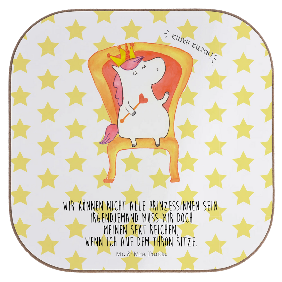 Du bist auf der Suche nach dem perfekten Geschenk, das die Herzen von Einhorn-Liebhabern höher schlagen lässt? Dann ist der wunderschöne quadratische Untersetzer mit dem kindlichen und charmanten Motiv "Einhorn König" aus der Einhorn-Kollektion von Mr. & Mrs. Panda genau das Richtige für dich! Mit einer Größe von 100 mm x 100 mm und einer Dicke von 5 mm schützt dieser stilvolle Untersetzer nicht nur deinen Tisch vor unschönen Abdrücken und Kratzern, sondern ist auch ein echtes Design-Highlight.